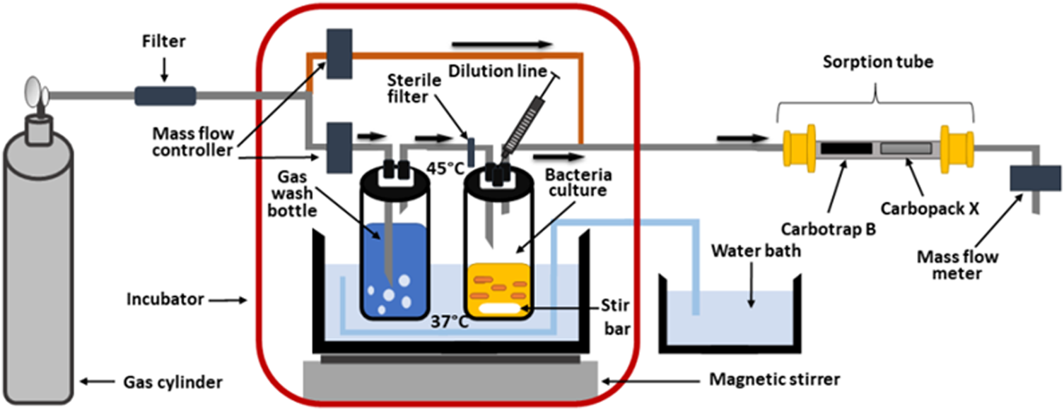 In-house-made system for cultivation of bacteria with simultaneous preconcentration of headspace gas on sorption tube.