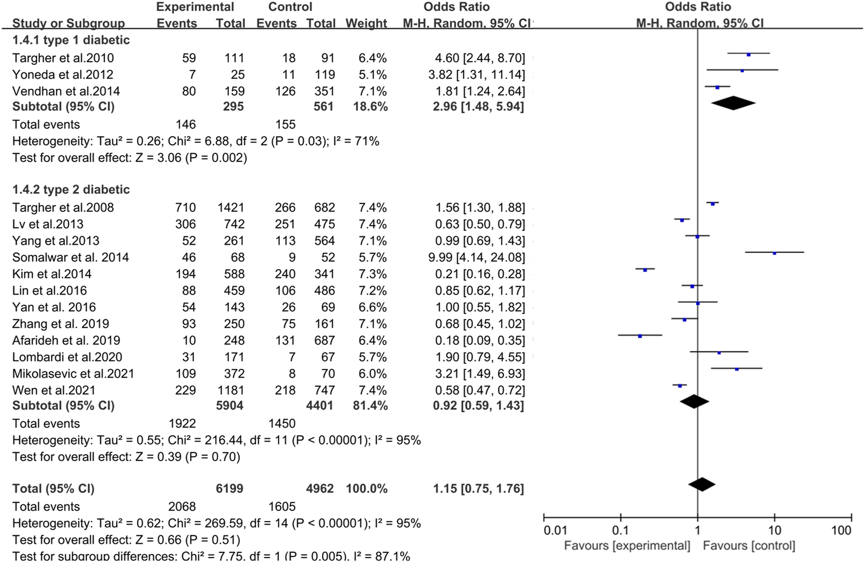 FIGURE 4. Meta-analysis of the association between nonalcoholic fatty liver disease and the risk of diabetic retinopathy in patients with different types of diabetes.