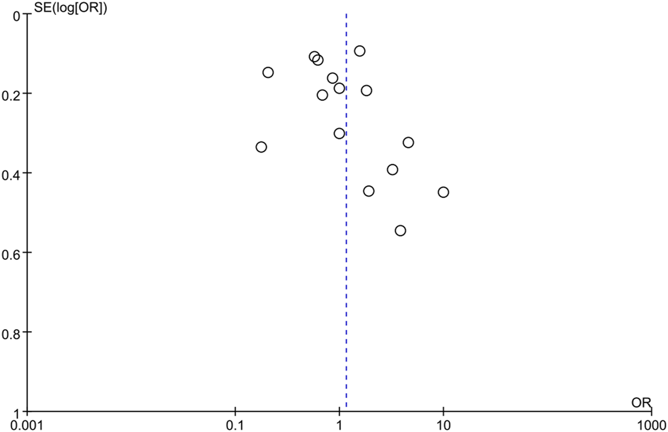 In addition to subgroup analysis, sensitivity analysis was performed to explain the high heterogeneity of the results. Deletion of one study at a time showed no significant change (Supplementary Figures S1, S2). The funnel plot and the Begg funnel plots were roughly symmetrical, indicating no significant publication bias. (Figure 6, Supplementary Figures S3–S5).