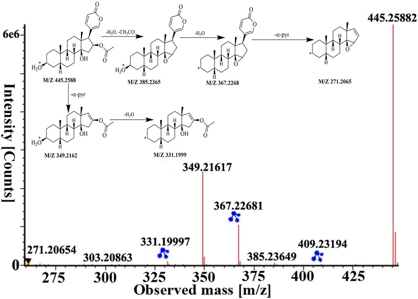 | 26 | C24H32O6 | 9.23 | 417.2275 | 0.9 | 417.2275 [M + H]+ | Bufotalidin | c |