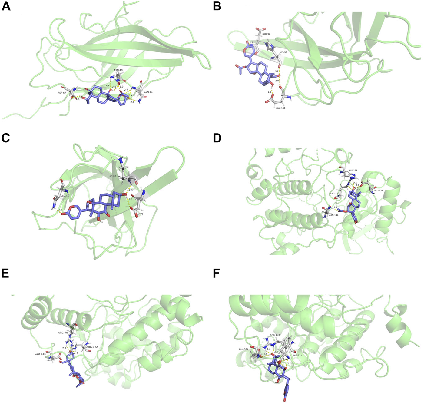 Download the protein PDB file of the core target from the RSCB PDB online platform9 and the MOL2 file of the core active ingredient from PubChem database10. Auto Dock Tools (1.5.6, The Scripps Research Institute) software was used for molecular docking, and the docking results were imported into Pymol (2.5.0, Schrodinger, Inc.) software for visualization. Finally, the binding strength and activity of the active ingredients and the target were evaluated according to the binding energy.