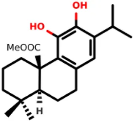 methyl (4aR,10aS)-5,6-dihydroxy-1,1-dimethyl-7-(propan-2-yl)-1,2,3,4,4a,9,10,10a-octahydrophenanthrene-4a-carboxylate | 2.8 ± 0.4 3.4 ± 0.3 | E. coli and S. aureus | Funes Chabán et al., (2021) |