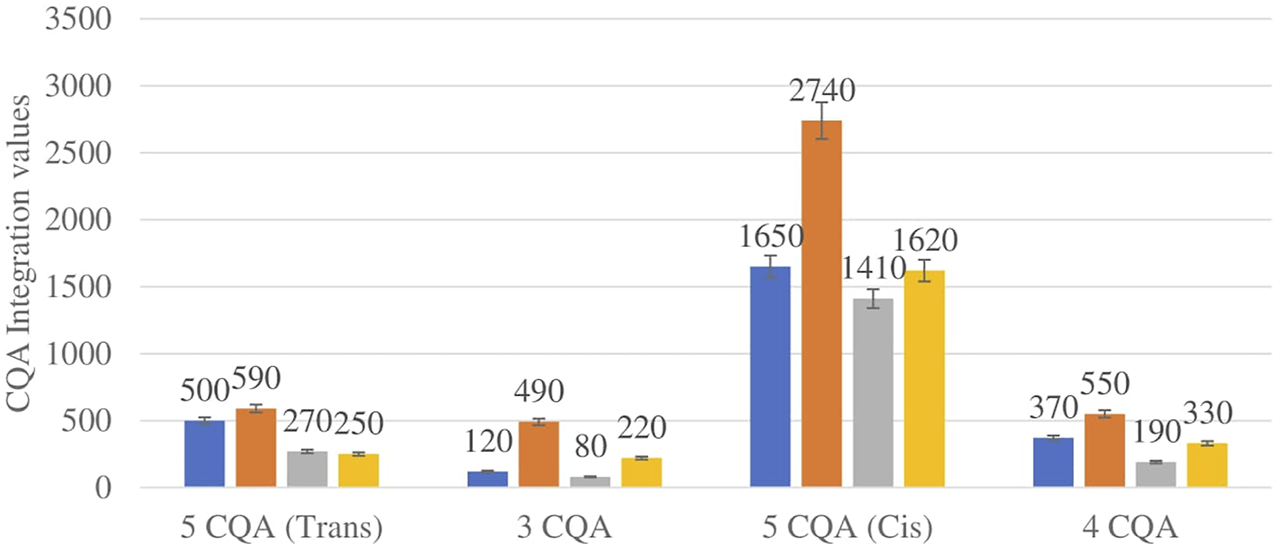 | CQA | 1 | 2.79 | 5-CQA (Trans) | C16H18O9 | 354.0951 | 353.0860 | 1.3 | 8 | 353.1; 191.1 |