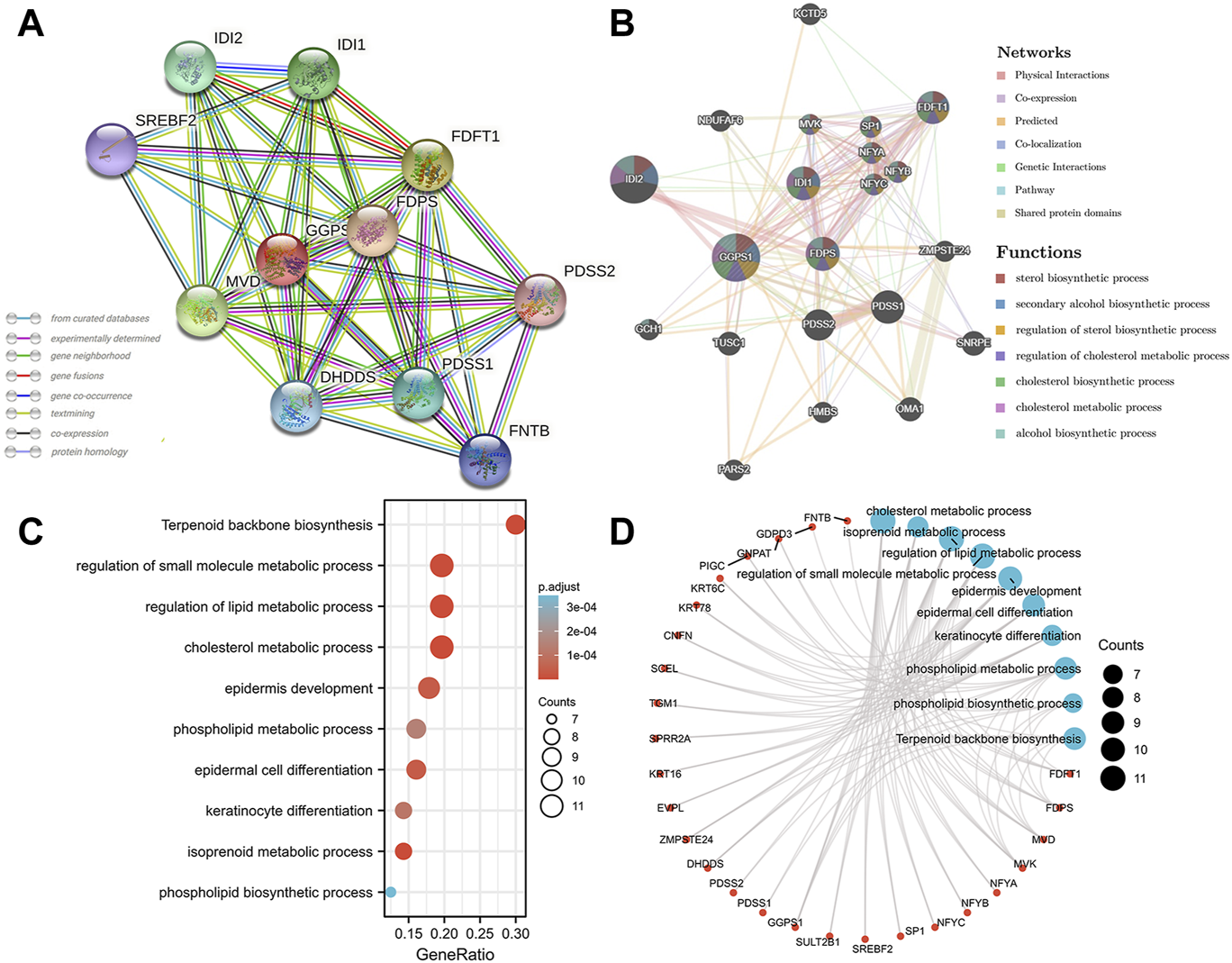 This study used the R package (DESeq2, version 1.26.0) to analyze Different Expressed Genes (Love et al., 2014). Based on the dataset of heatmaps, STRING database, and GeneMANIA, there were Gene Ontology (GO) and Kyoto Encyclopedia of Genes and Genomes (KEGG) analyses to evaluate GGPS1-associated potential gene functions with the R package (org.Hs.e.g.,.db, version 3.10.0 and clusterProfiler, version 3.14.3) (Yu et al., 2012). Gene Set Enrichment Analysis (GSEA) for interpreting gene expression data assesses whether an a priori defined set of genes shows statistically significant, concordant differences between two biological states (Subramanian et al., 2005; Subramanian et al., 2007). Set the False Discovery Rate (FDR) < 0.25 and the p.adjust<0.05 condition to be significant enrichment. The computational method was carried out using the R package clusterProfiler (version 3.14.3) and the R package ggplot2 (version 3.3.3) for data visualization.