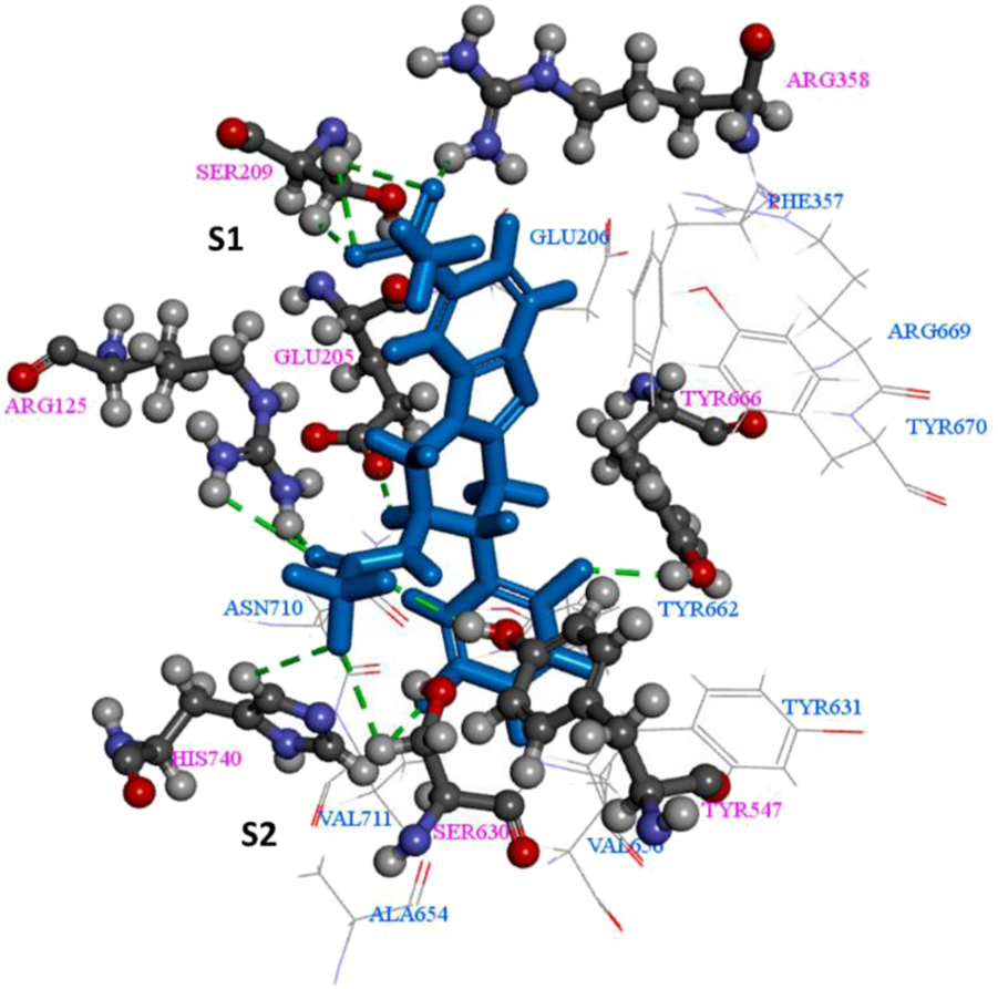 The key interactions between the ligand and DPP-4 complex (Meduru et al., 2016).