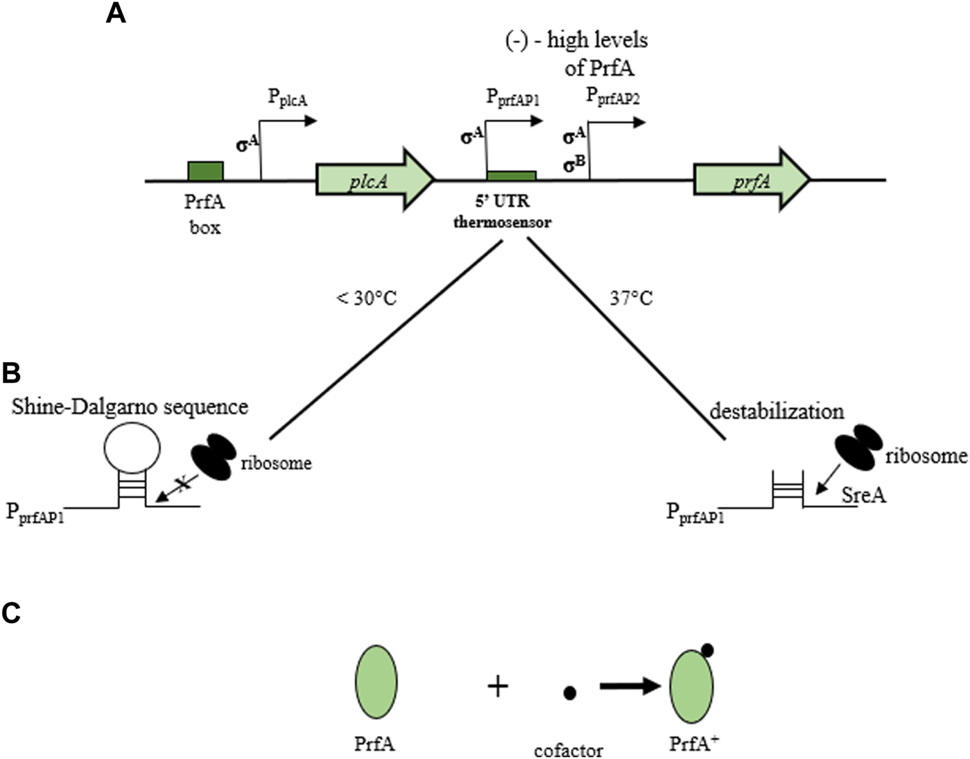 | Pathogenesis/Virulence | LIPI-1 (involved in the intracellular infection cycle of L. monocytogenes) | prfA | Positive regulatory factor A (PrfA) | Vázquez-Boland et al. (2001a) |