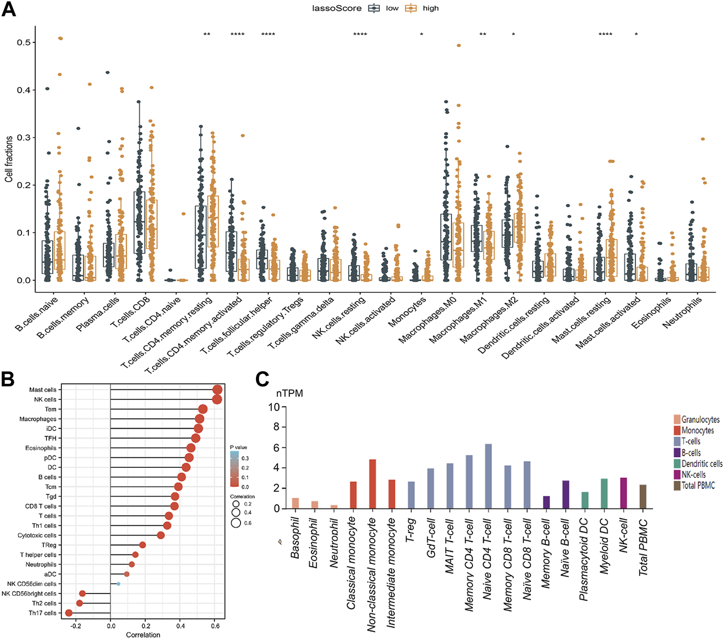 2.14 Correlation of lassoScore and immune infiltration in GC