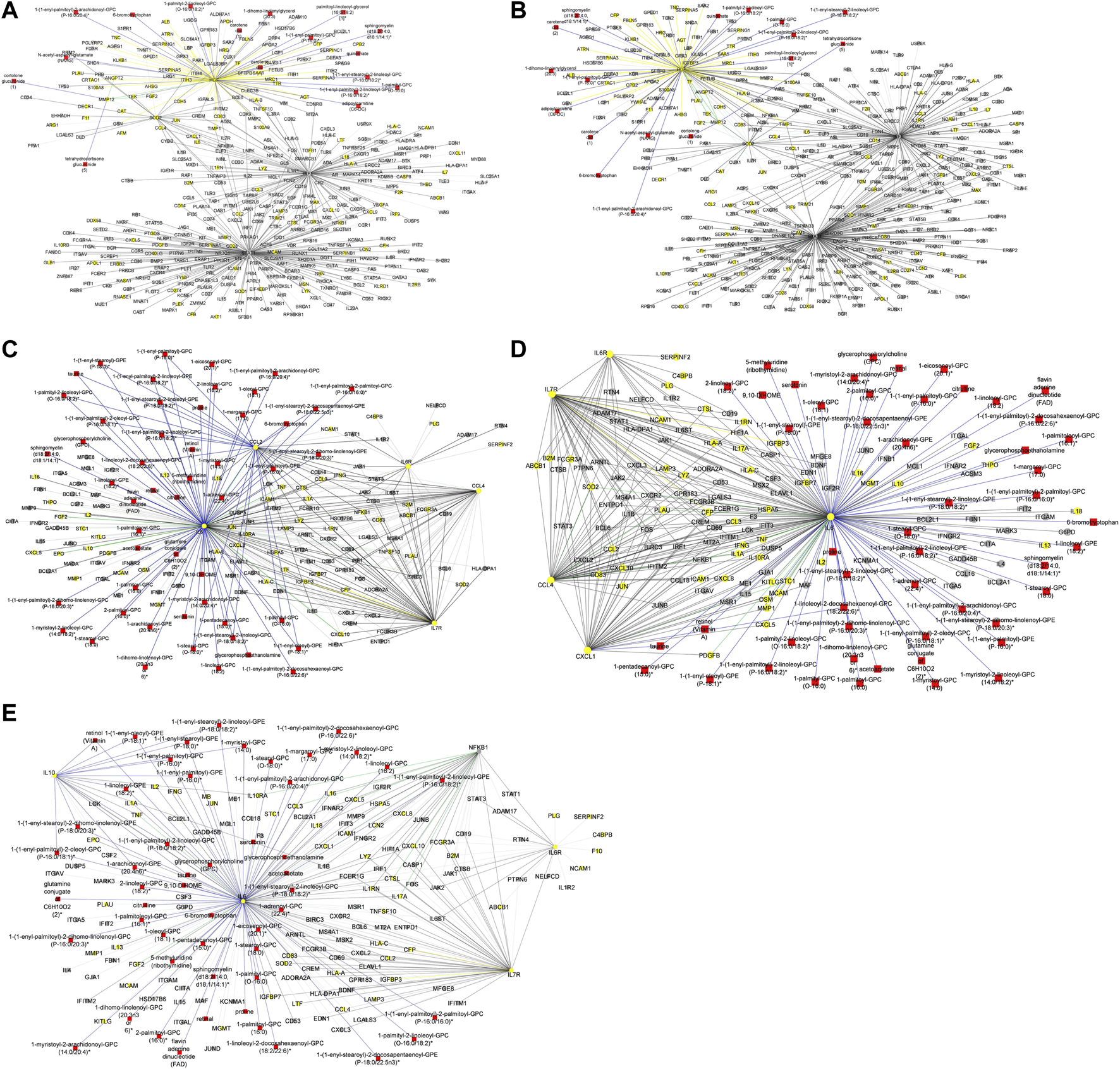 A co-expression network was constructed from the lipidomics measurement data. Similar to the process implemented for metabolite-metabolite interactome above, highly correlated pairwise interaction scores ≥0.7 were used to select components of the lipid-lipid interactome that was used for downstream analysis.