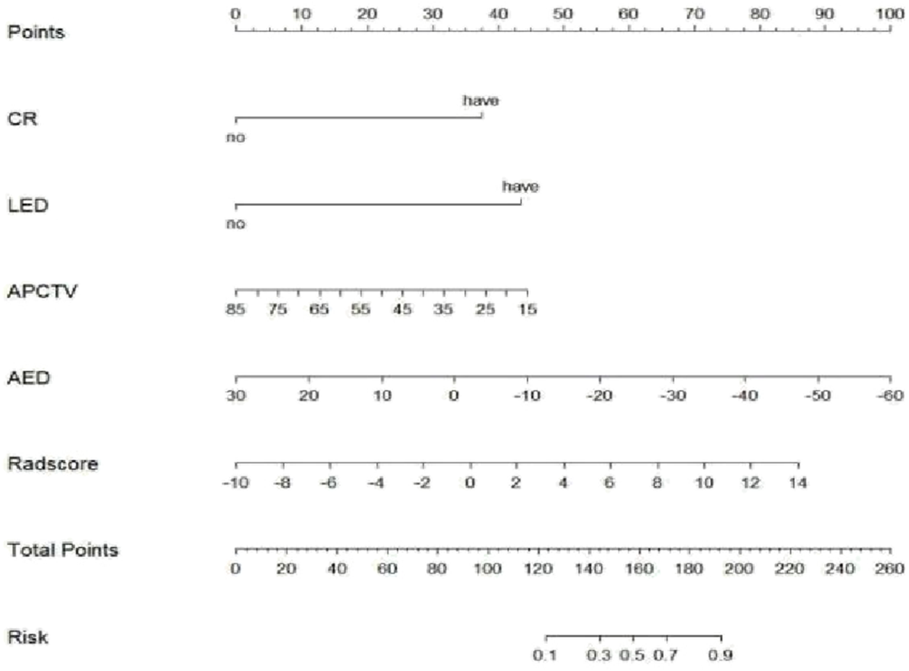 CR, centripetal reinforcement; LED, liver envelope depression; AAPP, abnormal arterial phase perfusion; APCTV, arterial phase CT value; APED, arteriovenous phase enhancement difference.