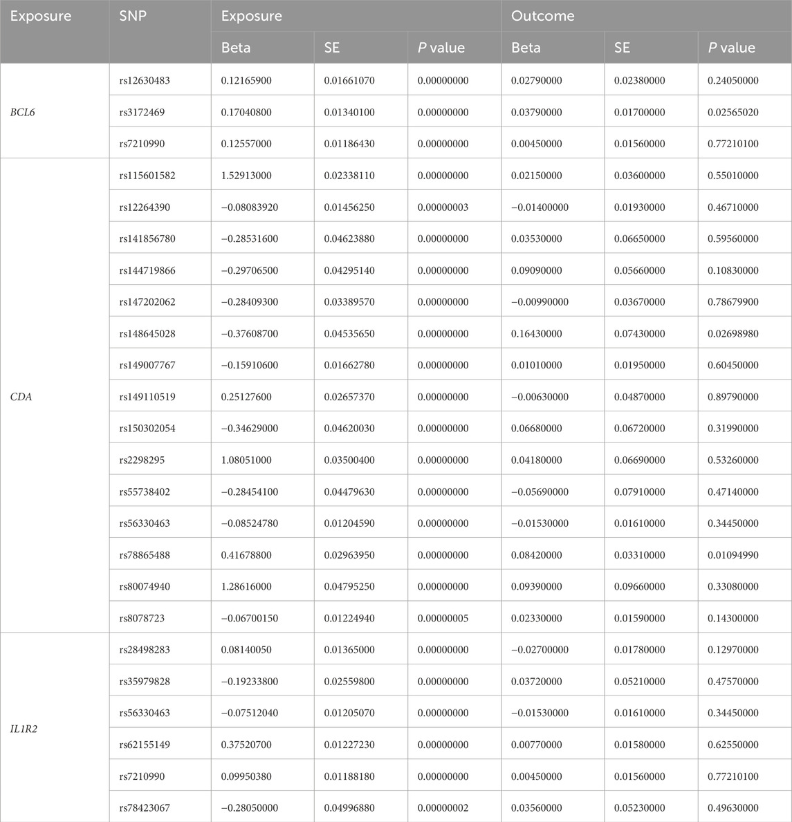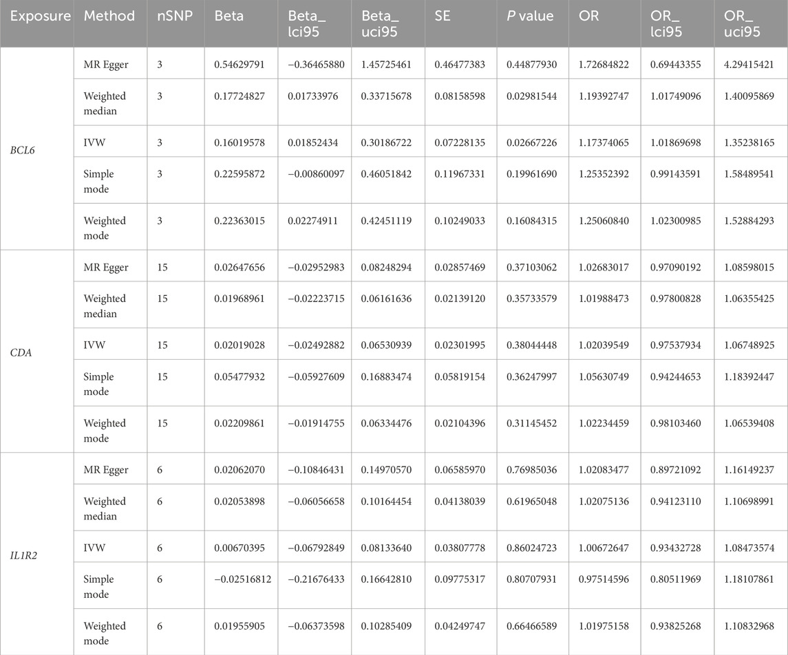 BCL6 is a sequence-specific DNA-binding protein that represses transcription by interacting with corepressor proteins, playing a crucial role in the cardiovascular system (Cardenas et al., 2017). One study revealed that BCL6 synergizes with PPARD to protect the heart and inhibits adriamycin-induced sensitivity in cardiomyocytes (Altieri et al., 2012). Liu et al. reported that BCL6-carrying extracellular vesicles regulate cardiomyocyte hypoxic injury and apoptosis, inhibiting inflammation and cardiac remodeling after AMI through the BCL6/MD2/NF-κB axis (Liu et al., 2022a). Employing a bioinformatics approach, Zhou et al. reported that BCL6 was significantly and positively correlated with upregulated neutrophils in AMI, which suggests that AMI is a possible future treatment target. (Zhou et al., 2022). In our current in-depth and meticulous research, we employed eQTL analysis, which not only strengthened the existing evidence of genetic associations but also further confirmed that BCL6 is a crucial risk gene that plays a vital role in AMI pathogenesis. As a known transcriptional regulator, variations in BCL6 expression levels may impact the homeostasis and function of cardiac tissue through complex regulatory networks, thereby increasing an individual’s risk of developing AMI. This discovery not only deepens our understanding of the genetic basis of AMI but also lays a solid theoretical foundation for the future development of novel therapeutic strategies targeting the BCL6 pathway, with the aim of reducing the incidence of AMI and improving patient prognosis. All the above data indicate the role that BCL6 plays in aging or cardiovascular disease and shows promise as an AMI diagnostic marker.
