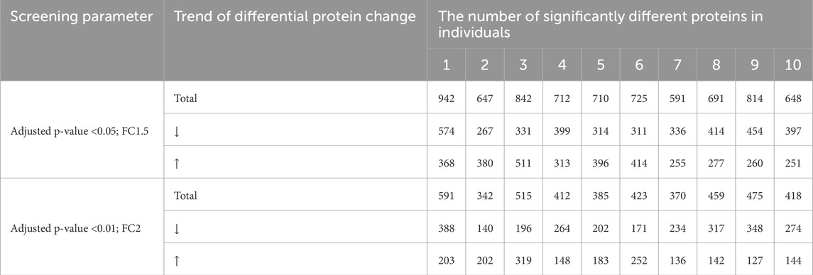 Table 3. Number of identified proteins in individualized comparison of urine proteomics under different screening conditions.