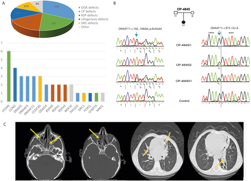 Genomic DNA was extracted from blood samples of probands and their available family members by standard methodology. Genomic investigations in 73 PCD-suspected individuals comprised ciliopathy gene panel sequencing. The panel includes all published PCD and motile ciliopathy-related genes (see supplementary methods for details).