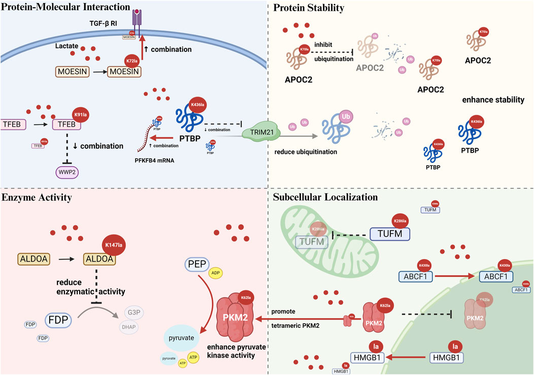 As proteins perform specific roles in various cellular compartments, regulating subcellular localization is a key mechanism by which lactylation affects protein function. This regulatory mechanism offers a new perspective on the functional significance of lactylation.
