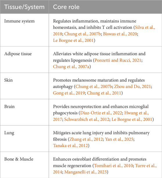 To sum up, the above summarizes the role of GPNMB under normal physiological conditions, which is summarized in Table 2, while the core mechanisms are conserved across tissues, their functional outcomes diverge as summarized in Table 3. This functional divergence manifests as three distinct pathological patterns: (1) metabolic reprogramming in adipose tissue through IL-4/arginase-1 axis, (2) immunosuppressive niche formation in tumors via DC-HIL/Syndecan-4 interaction, and (3) fibrotic ECM remodeling in lung through CD44/Serpinb2 activation.