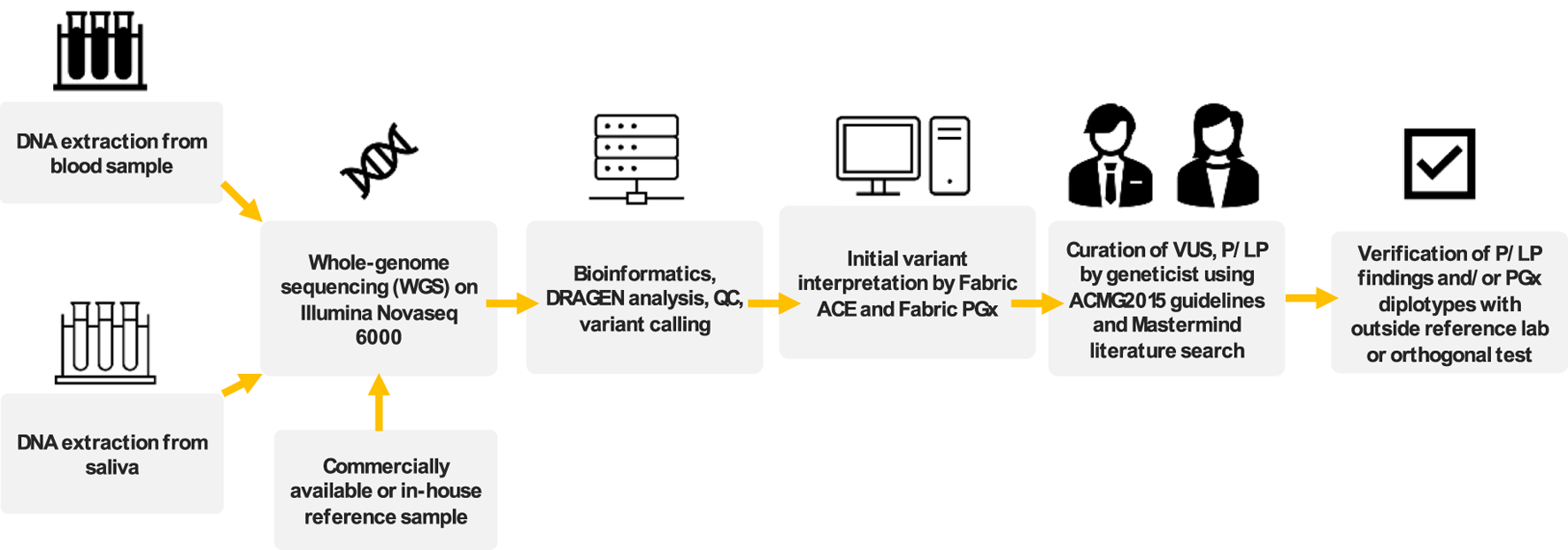 We developed a scalable clinical WGS-based lab developed procedure (LDP) for heritable disease gene testing and pharmacogenomics (PGx). We performed extensive validation across a range of blood, saliva, and reference specimens.