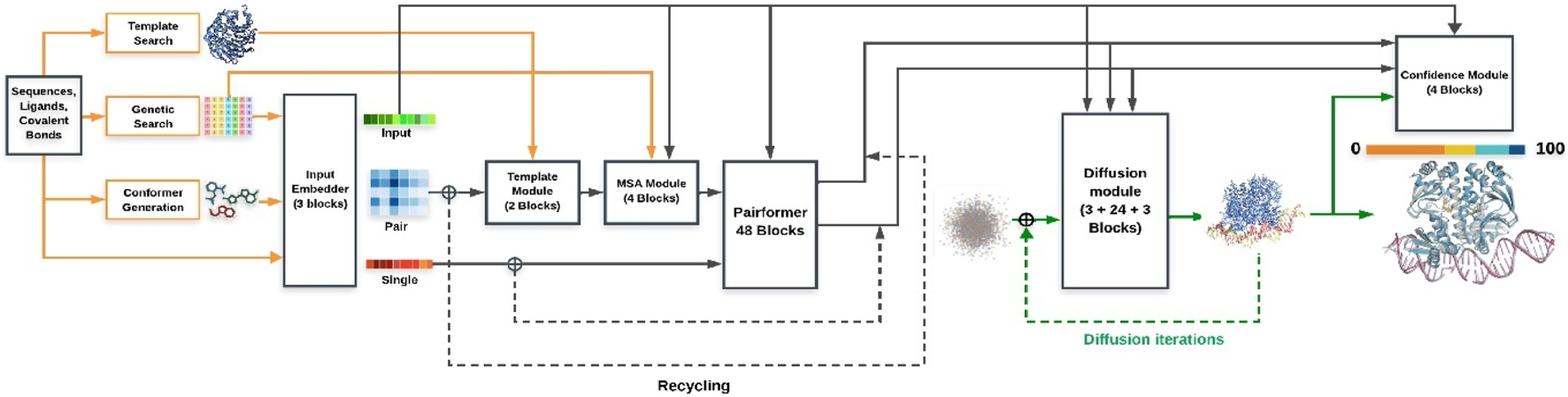 Figure 5. Schematic representation of the AlphaFold 3 architecture for protein structure prediction.