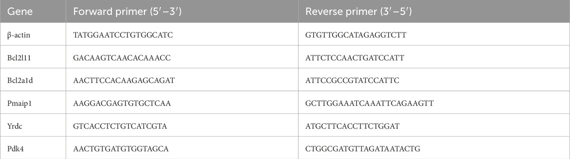 In this study, Bcl2a1d was found to be upregulated in bioinformatics analysis, while qRT-PCR results indicated downregulation, suggesting that its anti-apoptotic function is inhibited during intestinal ischemia-reperfusion injury. As a member of the Bcl-2 family, Bcl2a1d normally maintains cell survival by stabilizing mitochondrial membrane potential and inhibiting the release of cytochrome c (Sugioka et al., 2003). The intense inflammatory response and oxidative stress following reperfusion may weaken its anti-apoptotic capacity, leading to decreased expression and thereby promoting apoptosis and tissue damage. Currently, research on Bcl2a1d is still limited, and further studies are needed to support these findings.