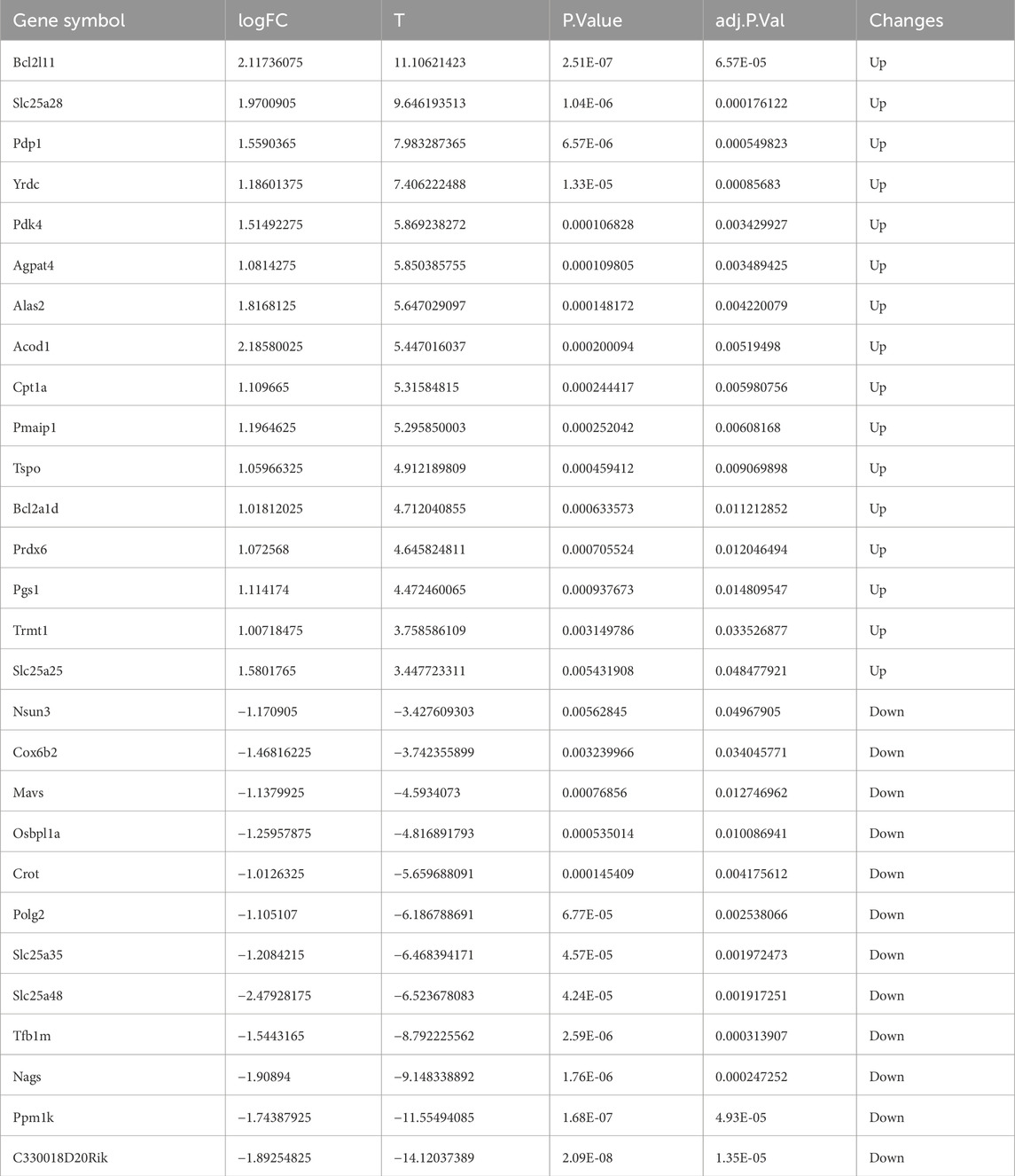 2.3 Identification and functional enrichment of differentially expressed mitochondrial-related genes