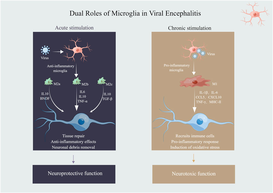 Keywords: viral encephalitis, central nervous system, microglia, neuroinflammation, activation, dual function