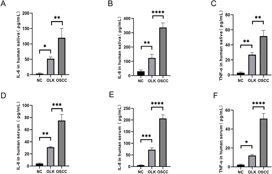 3.2.2 Elevated inflammatory cytokine levels in saliva and serum of oral leukoplakia and OSCC patients