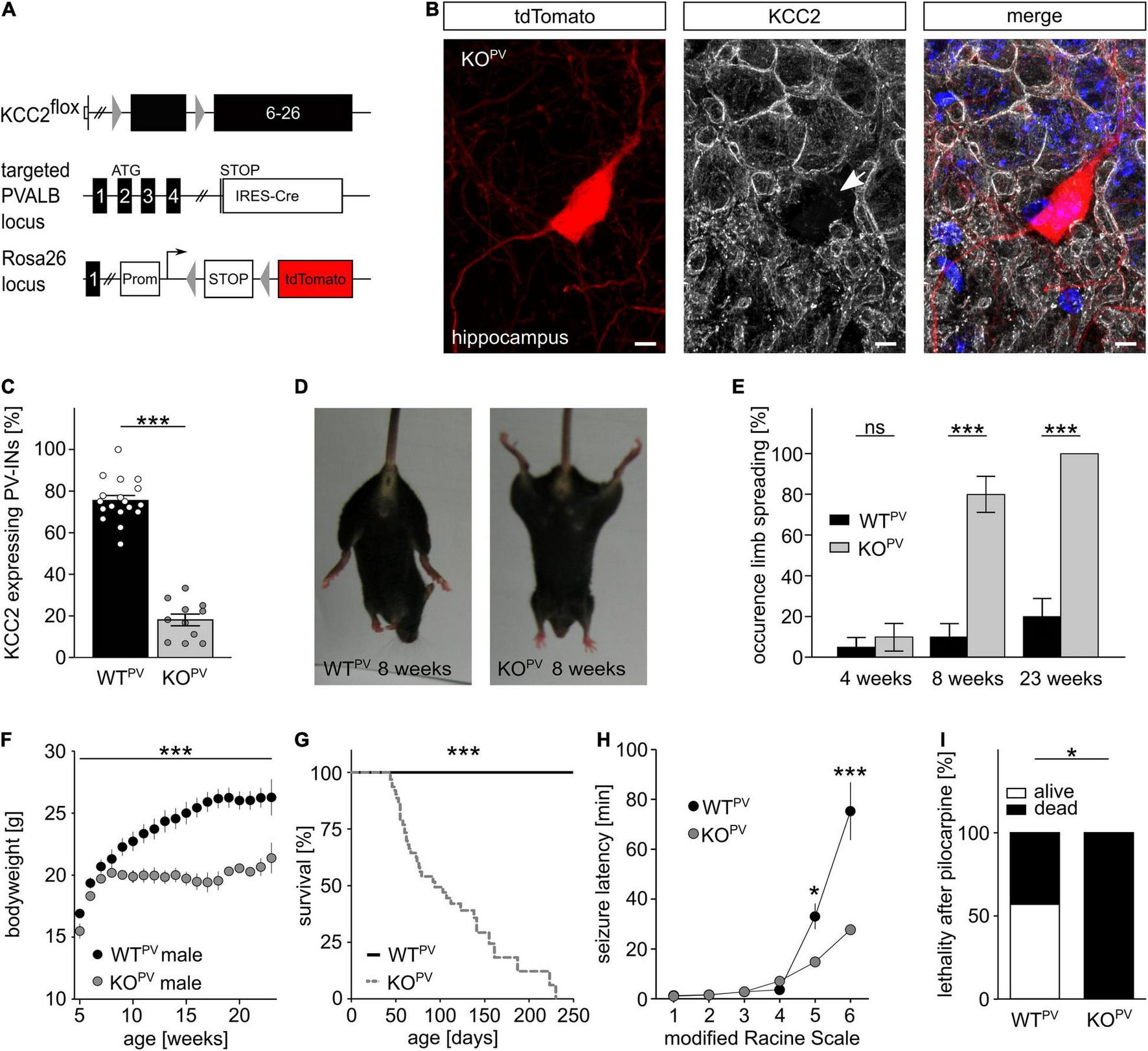 Notably, KCC2 KOPV mice also showed a delayed increase in bodyweight from 8 weeks of age onward (Figure 2F) and the lethality drastically increased with almost no KCC2 KOPV mouse surviving beyond 8 months of age (Figure 2G).