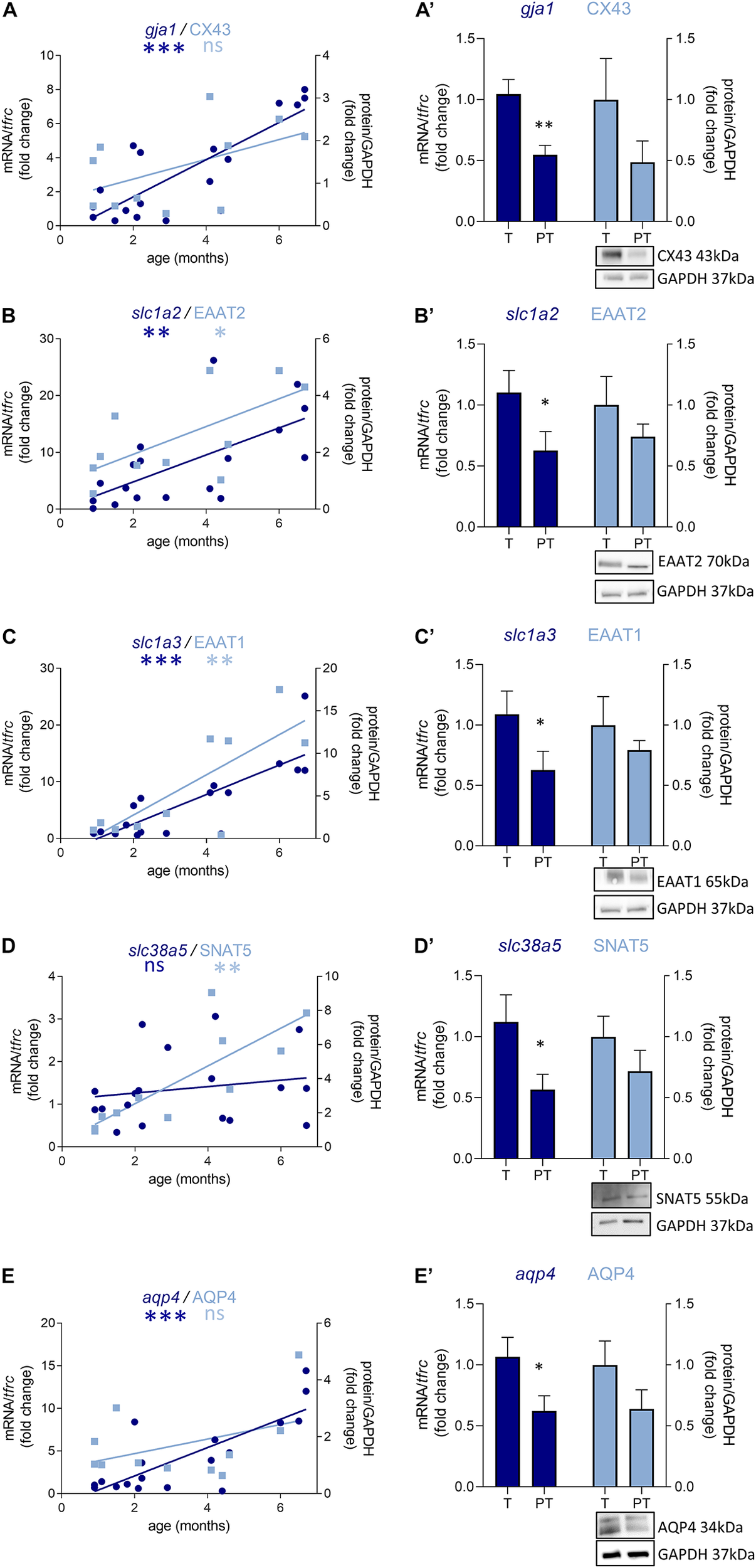 | Glutamate dehydrogenase 1 | glud1 | GDH1 | 2.2 | 0.67 | 0.09 | ns | 1.4 | 0.40 | 0.29 | ns |