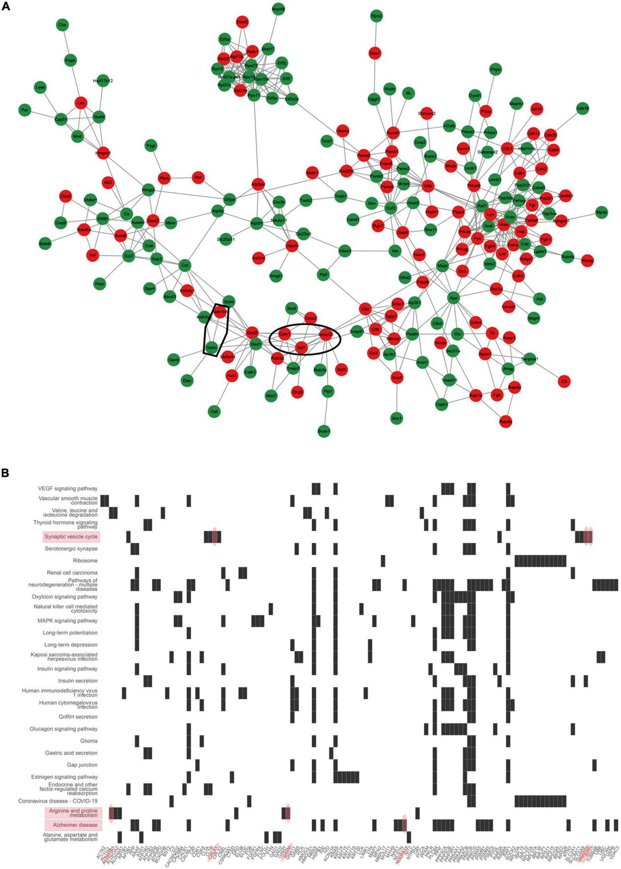 The identified differential expression proteins were imported into the STRING database1 to construct a (Protein–Protein Interaction) PPI network, and the confidence score of the minimum required interaction score was set greater than or equal to 0.7. The PPI network was visualized using Cytoscape (Doncheva et al., 2019).