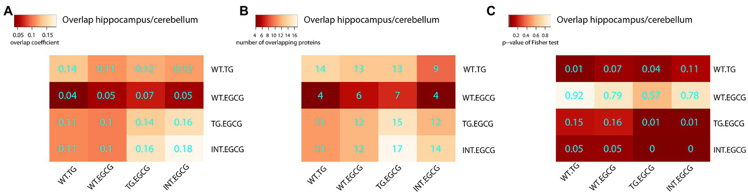 (TG.EGCG-TG.NT) − (WT.EGCG-WT.NT) (interaction: proteins responding differently to the treatments in TG compared to WT mice)