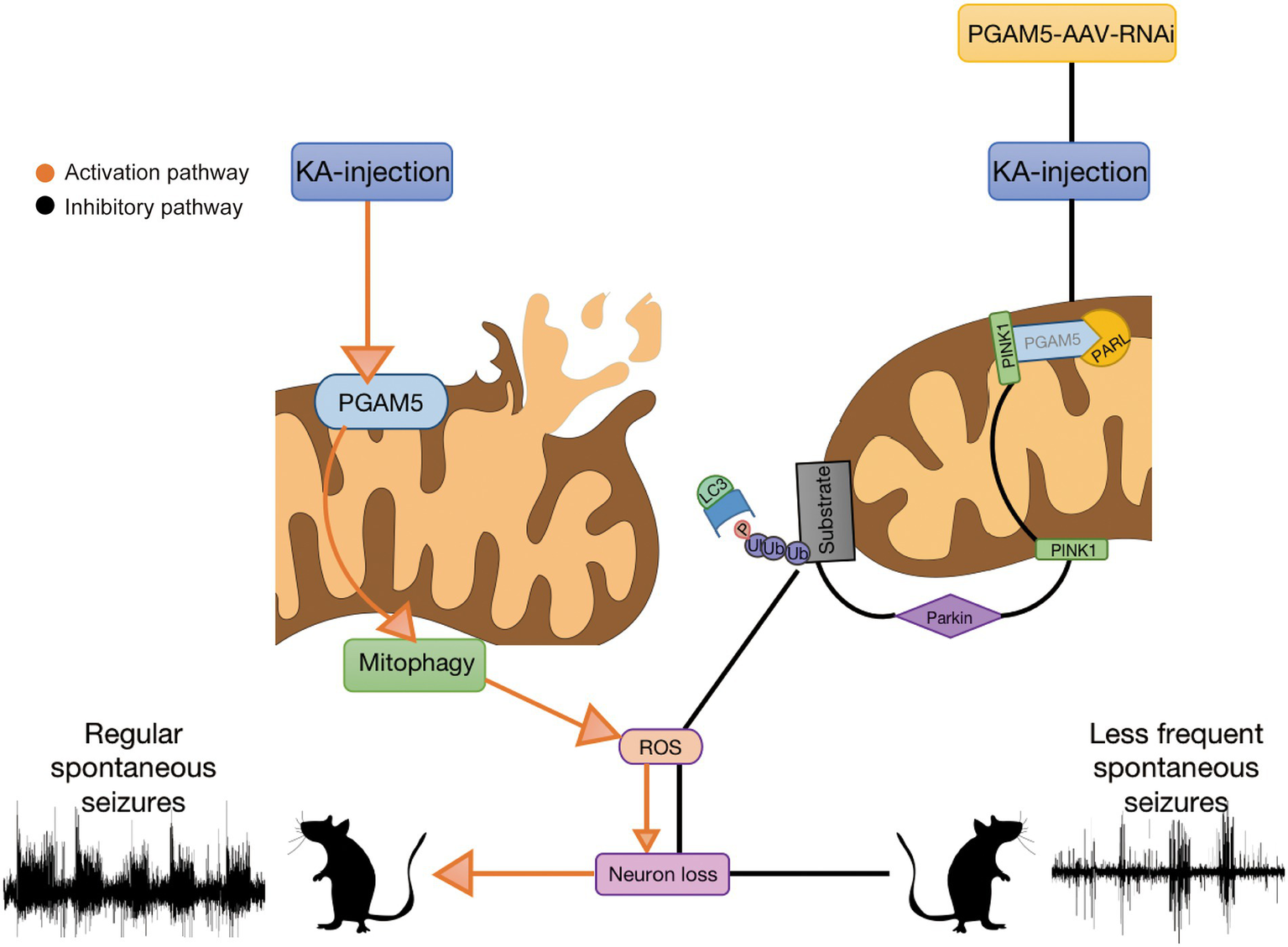 Conclusion: Inhibition of PGAM5 expression reduces seizures via inhibiting PINK1-mediated mitophagy.