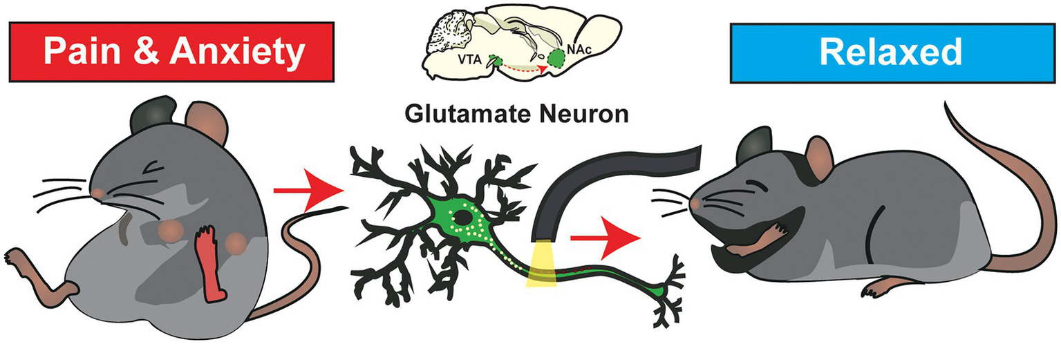 Together, glutamatergic inputs from VTA to NAc contribute to chronic neuropathic and inflammatory pain and pain-related anxiety and depressive behaviors, providing a mechanism for developing novel therapeutic methods.