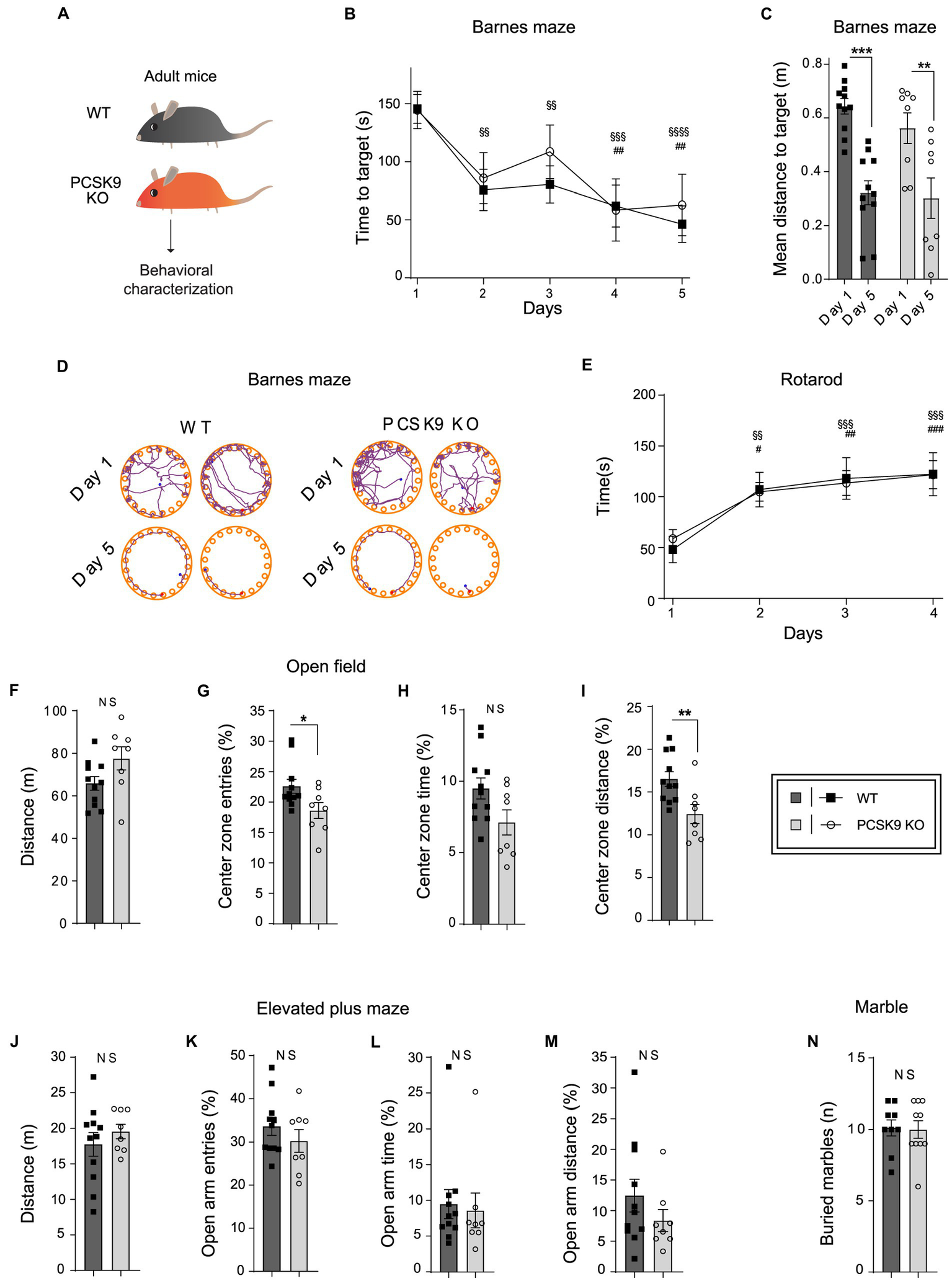Taken together, altered PCSK9 activity could potentially affect brain function in three different ways: (1) the potent effect of PCSK9 on plasma LDL cholesterol could affect exchange with the CNS and its overall lipid composition, (2) PCSK9 expressed in the brain could directly affect local cholesterol metabolism, and (3) local PCSK9 could affect neuronal function through interactions with receptor systems, independently of its role in cholesterol metabolism. To address this, we studied the consequences of complete loss of PCSK9 and the concomitant change in circulating cholesterol on biochemical and functional properties of the mouse brain. Furthermore, we investigated the impact of altered PCSK9 expression in the developing brain on the architecture of the cerebral cortex.