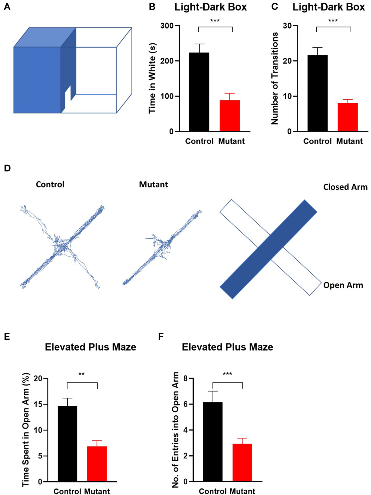 Taken together, these assays indicate that mutant mice display increased anxiety compared with control littermates.