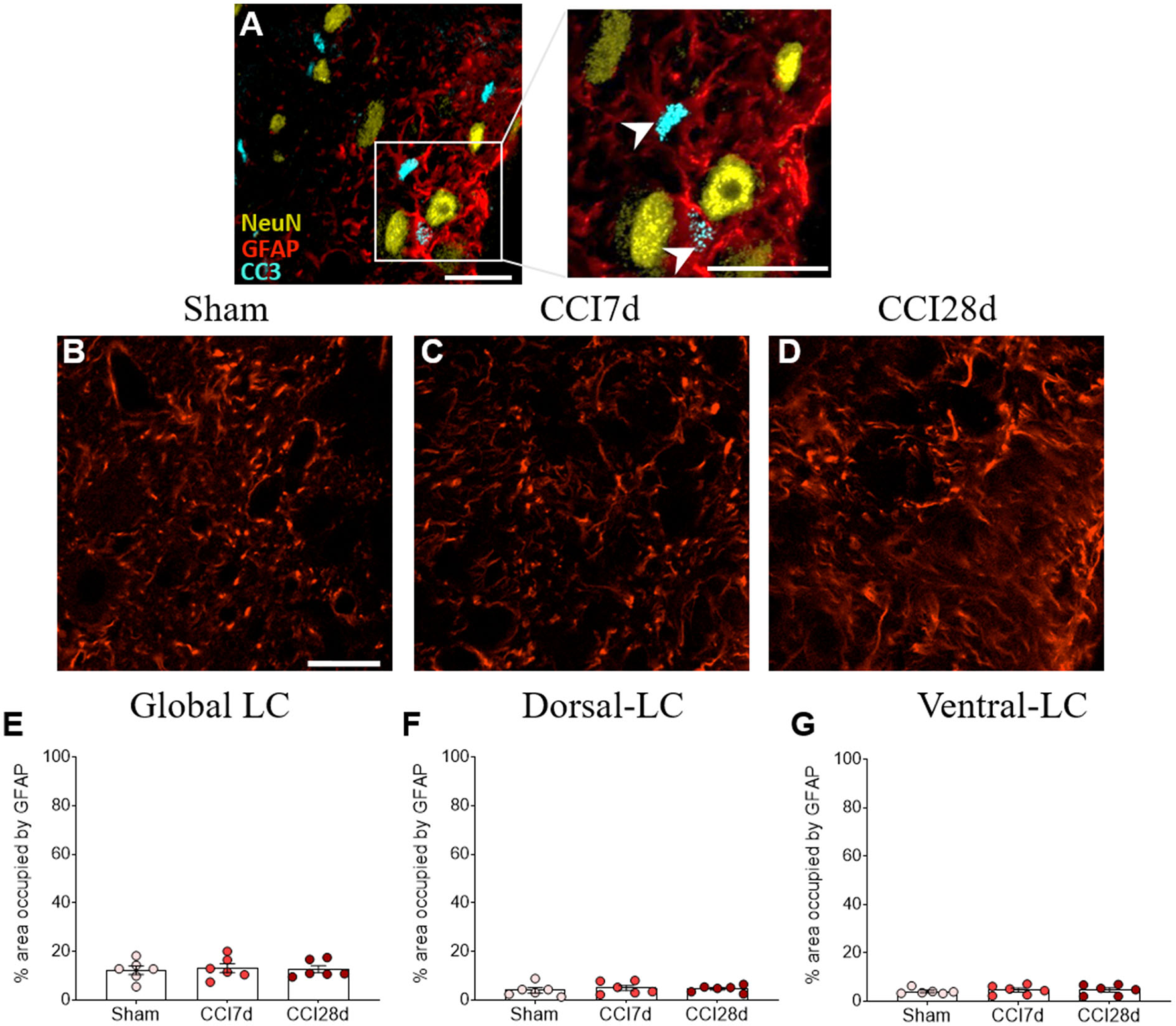 Quantification of CC3 and GFAP in the LC