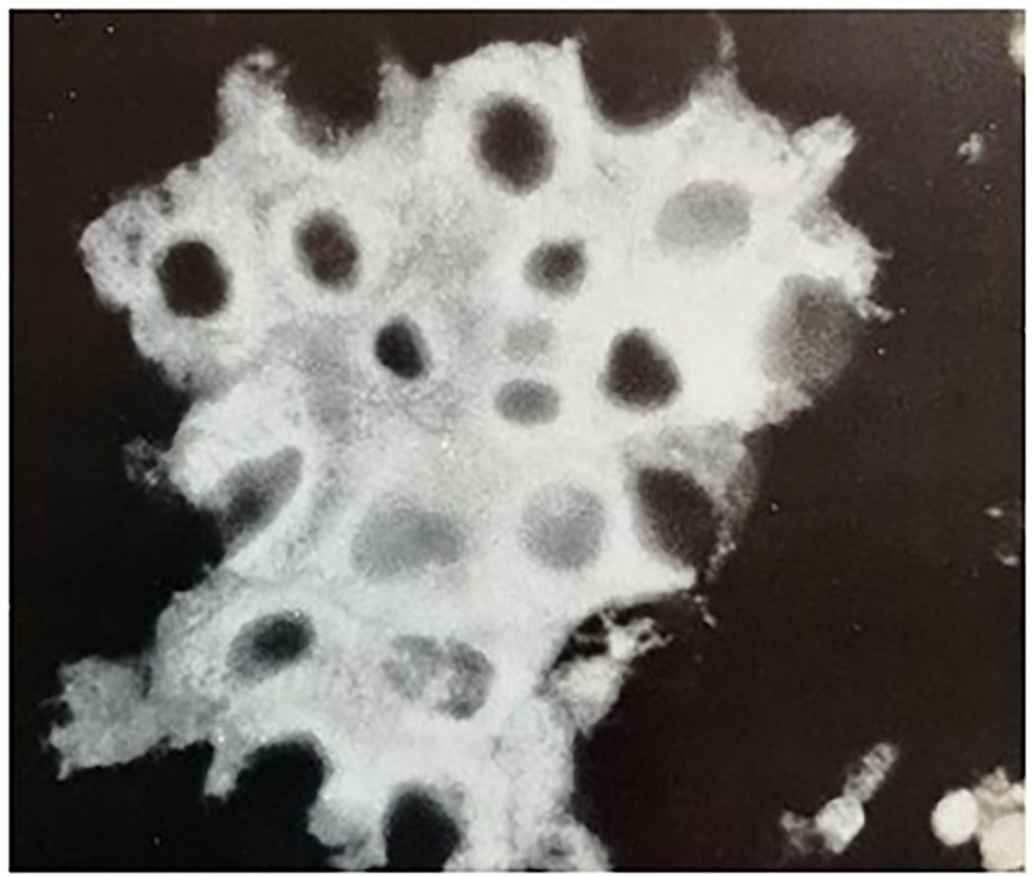 The ultrastructural characteristics of these cells were that they were round to oval and uniform in size; solidly packed and connected with inter-digitation of numerous villi projecting the cell membranes; no one cell was covered with a basal lamina; lipid granules were rare but when present, they were not surrounded by the smooth-surface endoplasmic reticulum (Sharma and Hashimoto, 1972).