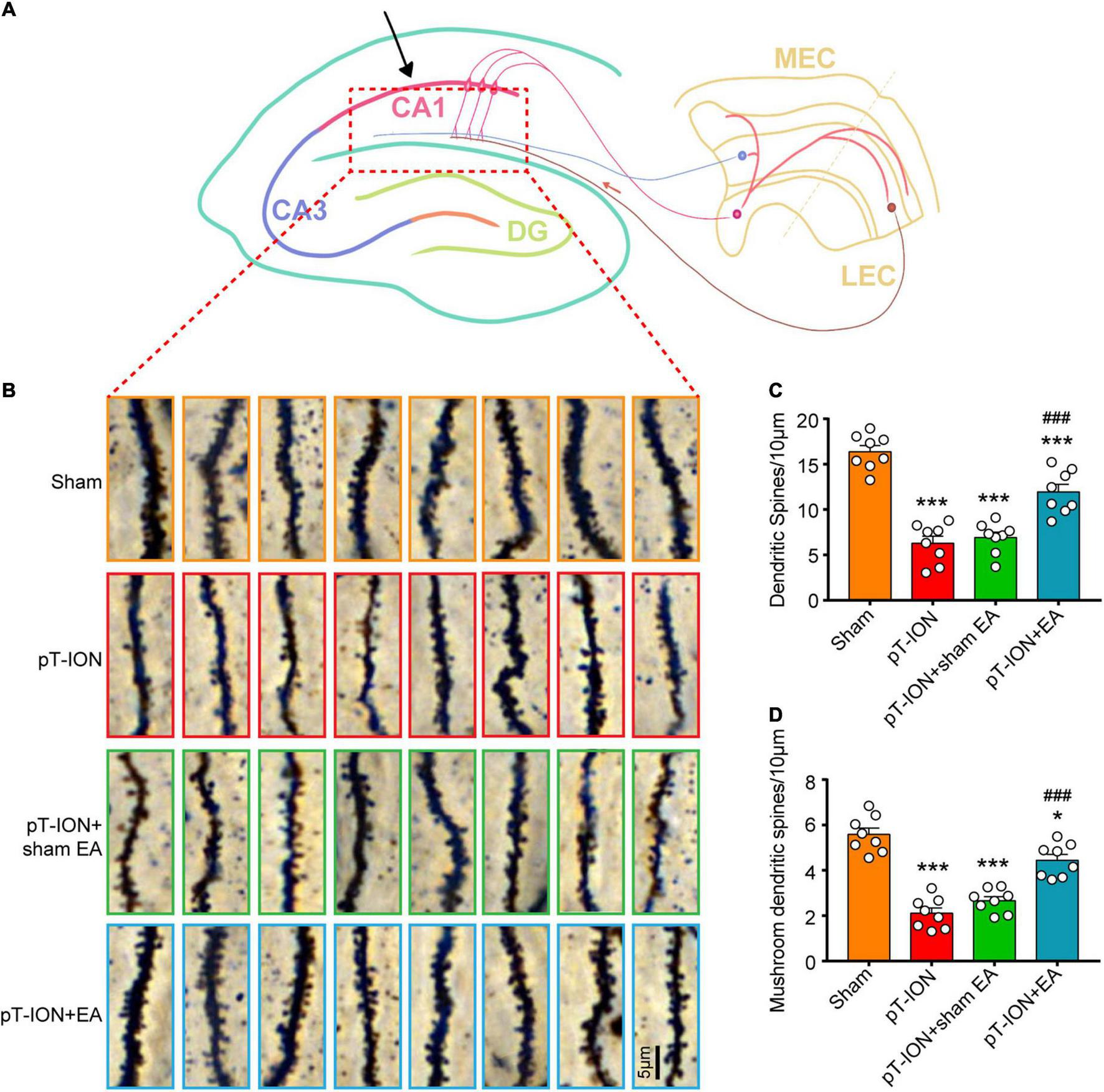 Electroacupuncture increases the density of total dendritic spines and mushroom-type dendritic spines in the CA1 hippocampal region of pT-ION mice