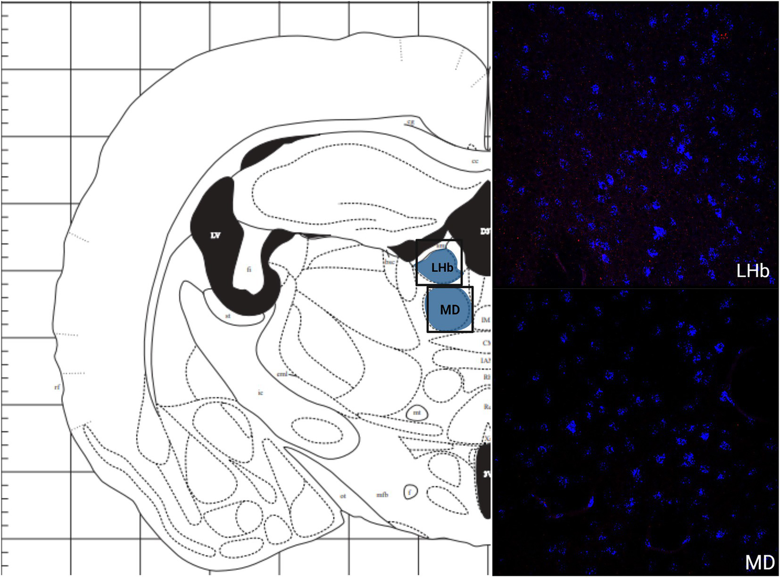 The expression of MC3R and MC4R mRNA in the LHb and the MD.