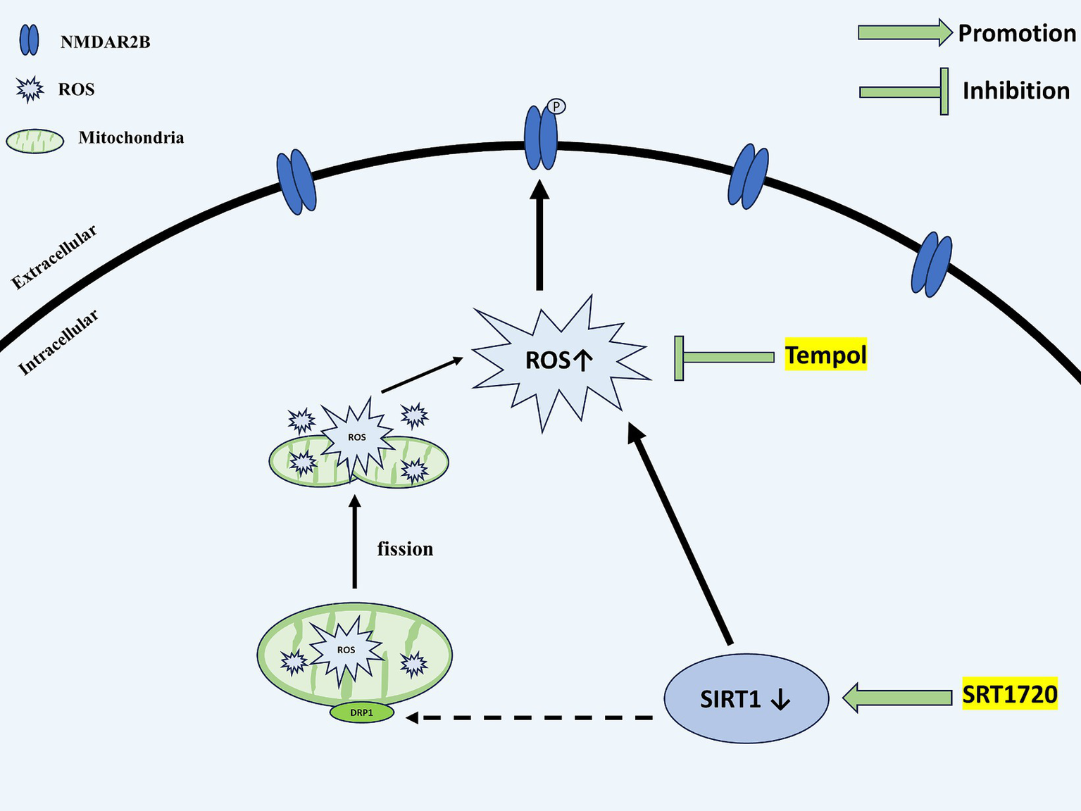 SIRT1 likely mediates the production of ROS via DRP1