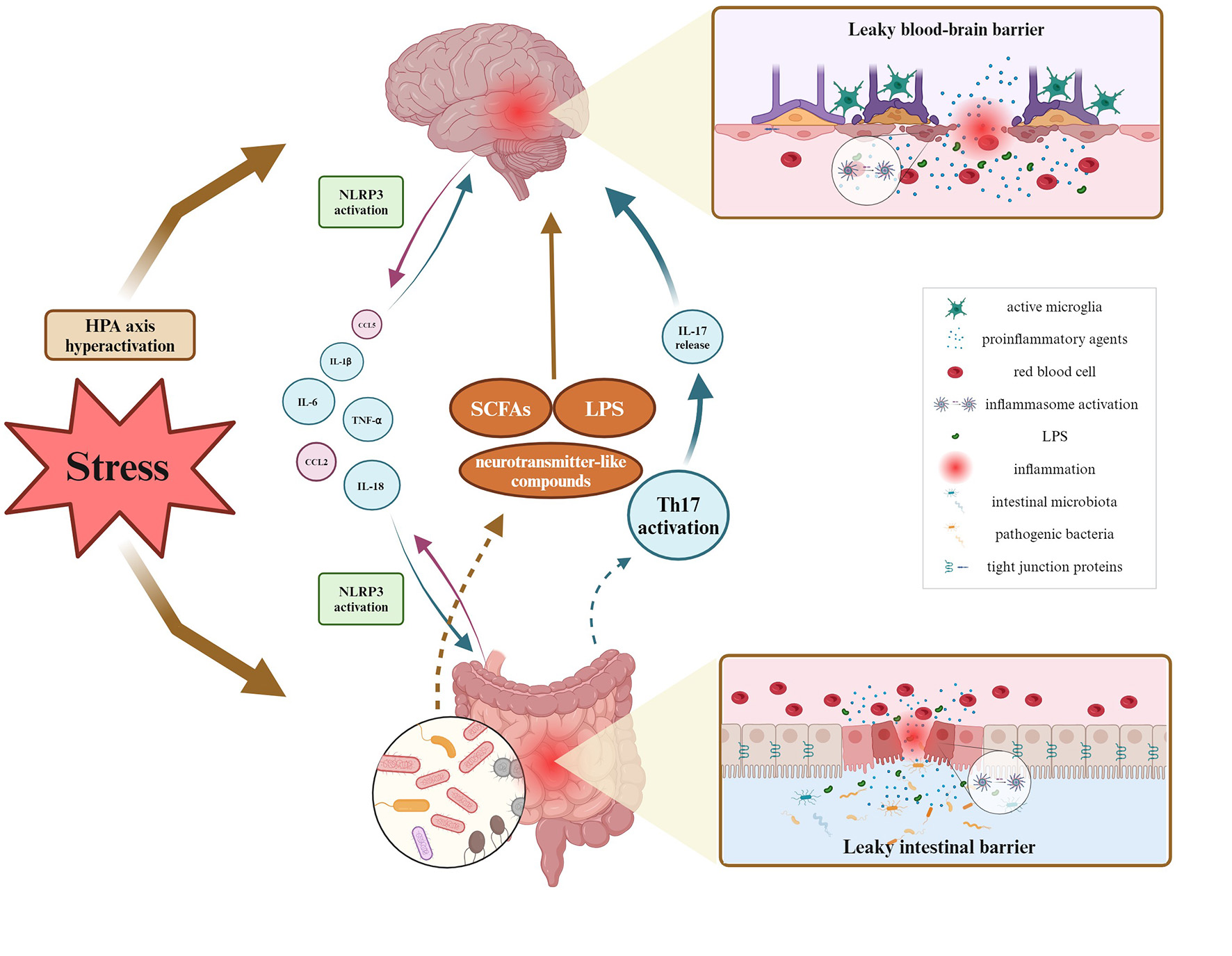 gut-brain axis, blood-brain barrier, tight junctions, stress, inflammation, mood disorders