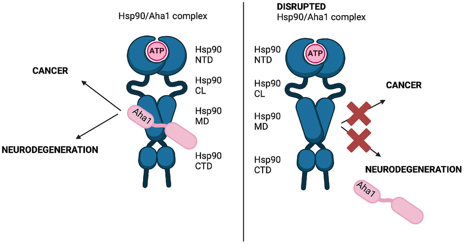 Hsp90/Aha1 is associated with increased Hsp90 ATPase activity and associated client maturation drives cancer and neurodegenerative diseases. Disrupting Hsp90/Aha1 is a viable strategy to treat these diseases.