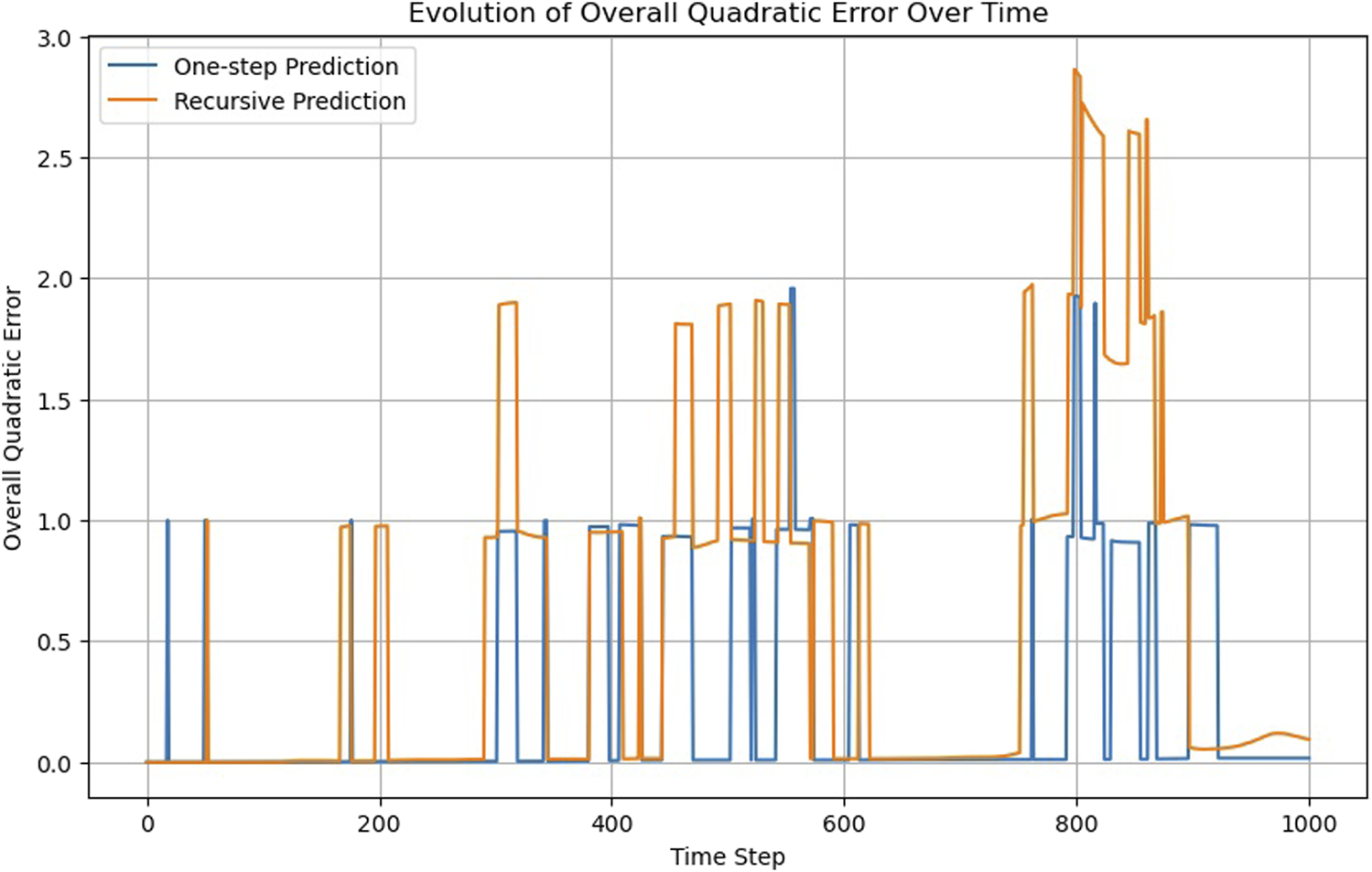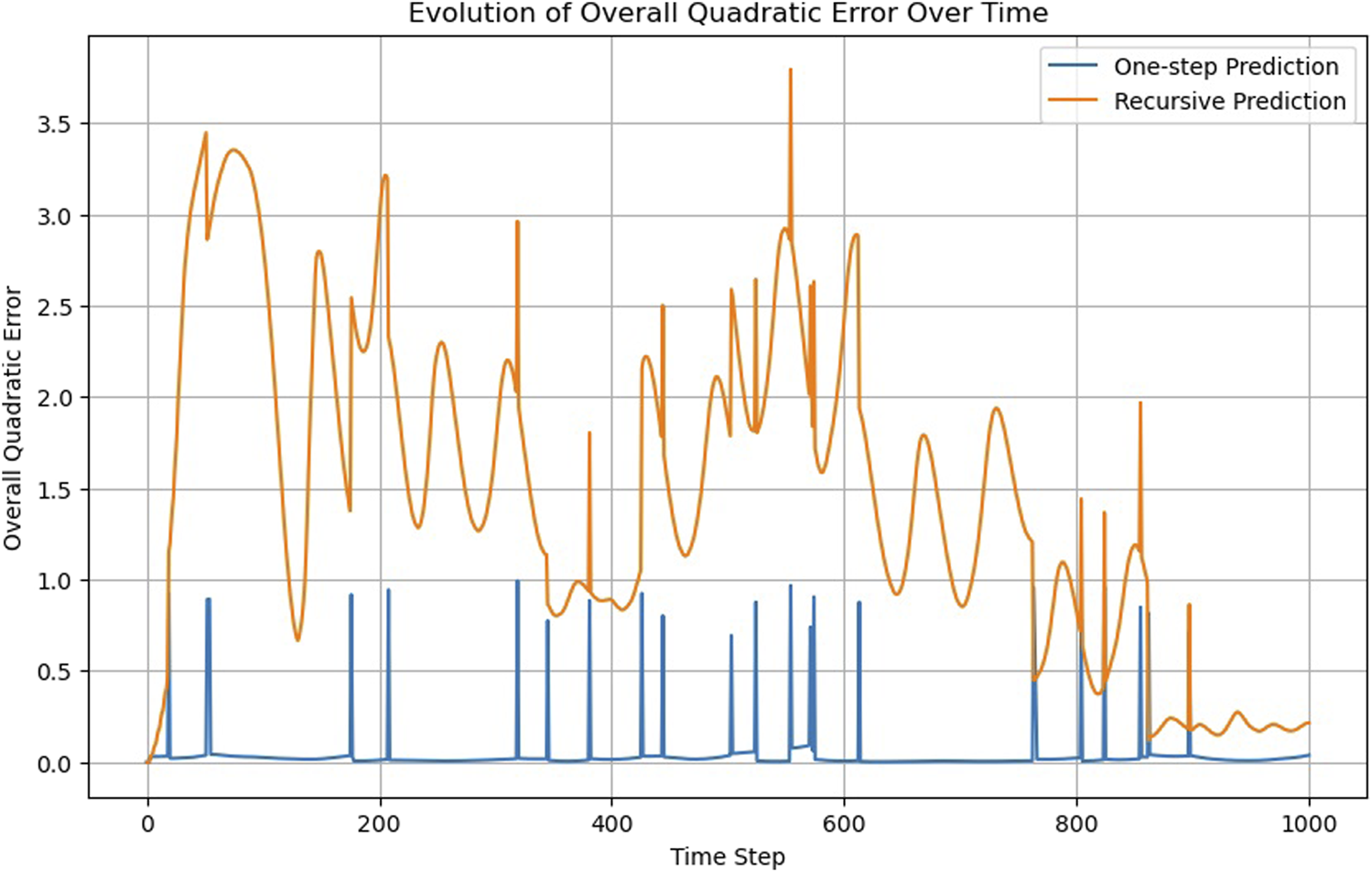 One-step versus recursive predictions of the FNN model.