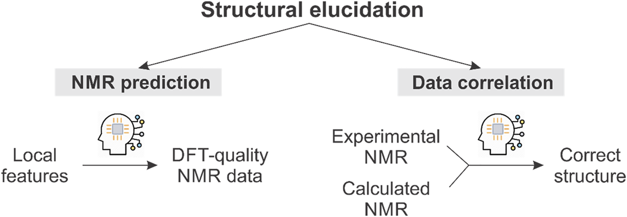 Schematic representation of the use of ML in computational NMR-aided structural elucidation.