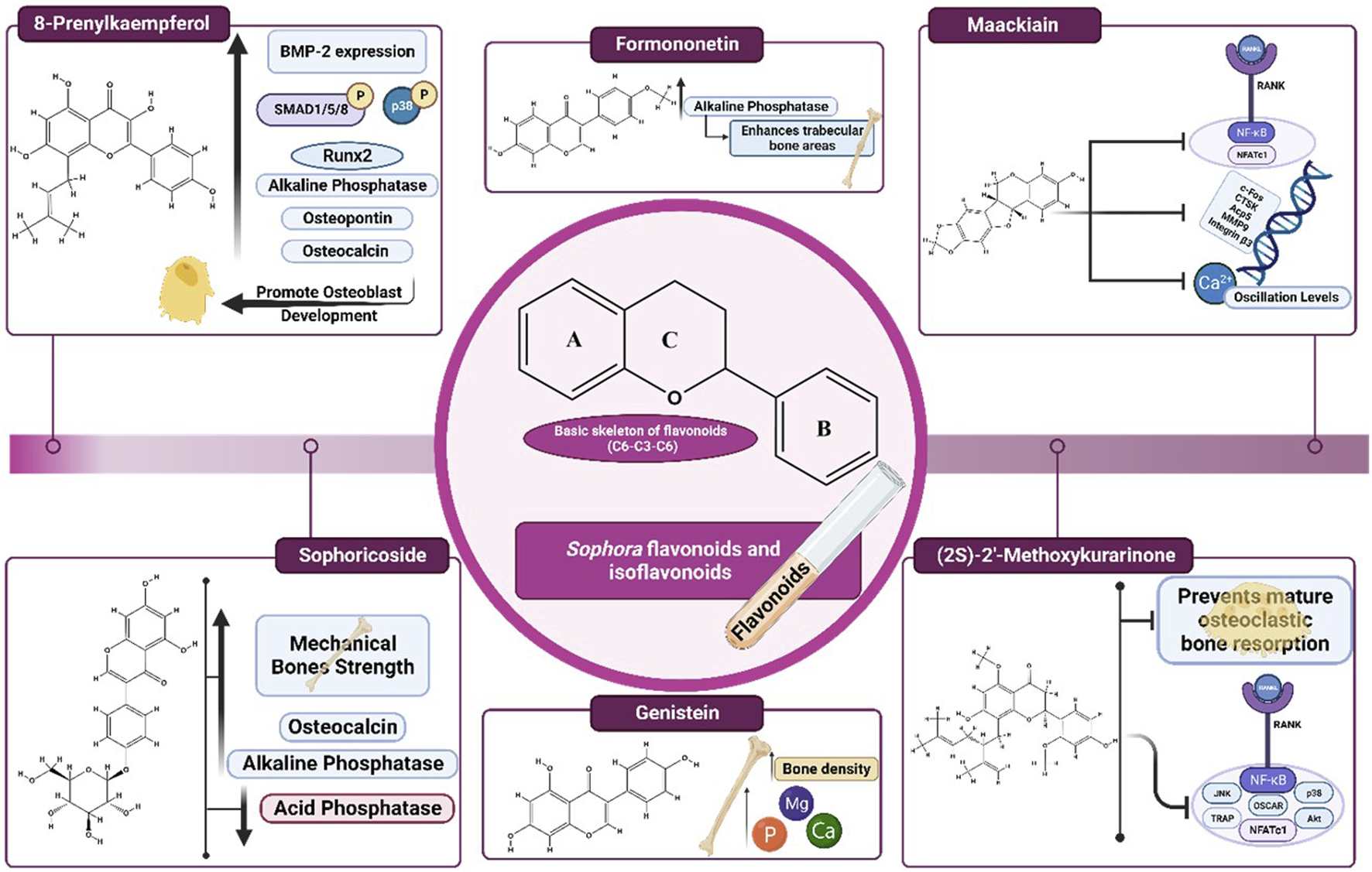 Sophora flavonoids and isoflavonoids with potential effects on bone health.