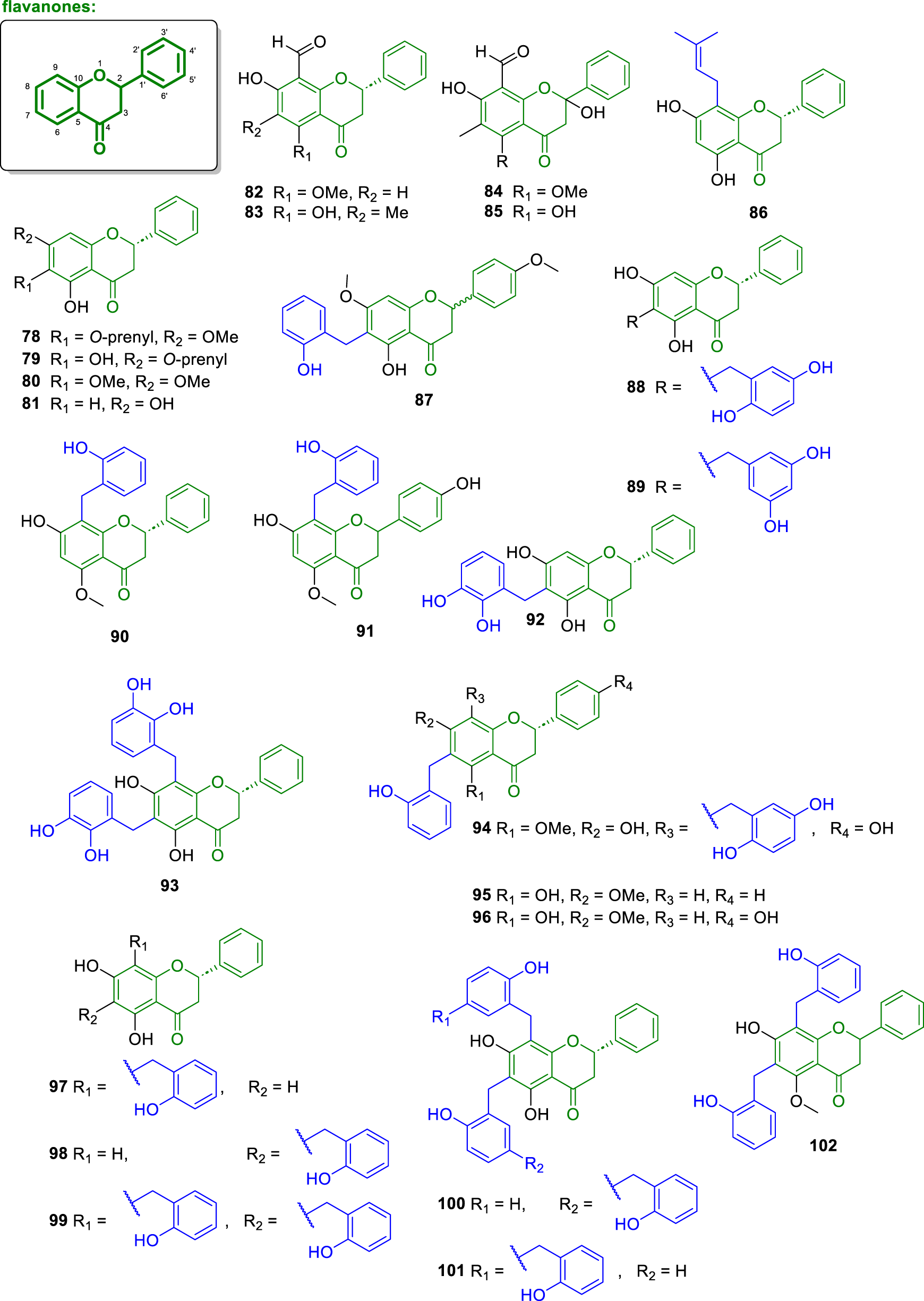 Chemical structures of flavanones isolated from Annonaceae (82–102).