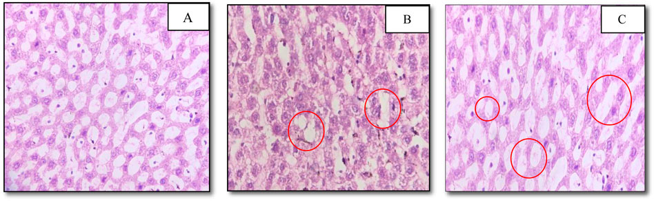 Formalin-fixed organs and tissue were washed under tap water. Ethanol was then used to dehydrate them, followed by clearing through xylene. Finally, the xylene-cleared tissue and organs were embedded in paraffin wax. Sections of tissue and organs 5 mm thick were prepared using a rotary microtome machine. Lastly, the sectioned and embedded tissues were stained with H (hematoxylin) and E (eosin) stains for histopathological observations (Meharie, et al., 2020). The prepared microscopic slides were then investigated under a microscope, and images were captured using a camera at ×40 magnification.
