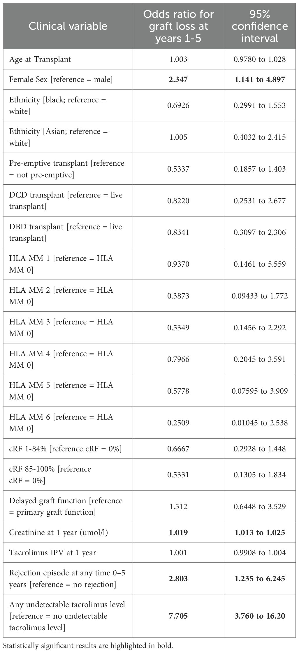 Table 3. Multivariable logistic regression analysis of clinical variables associated with graft loss at 1–5 years post-transplant.