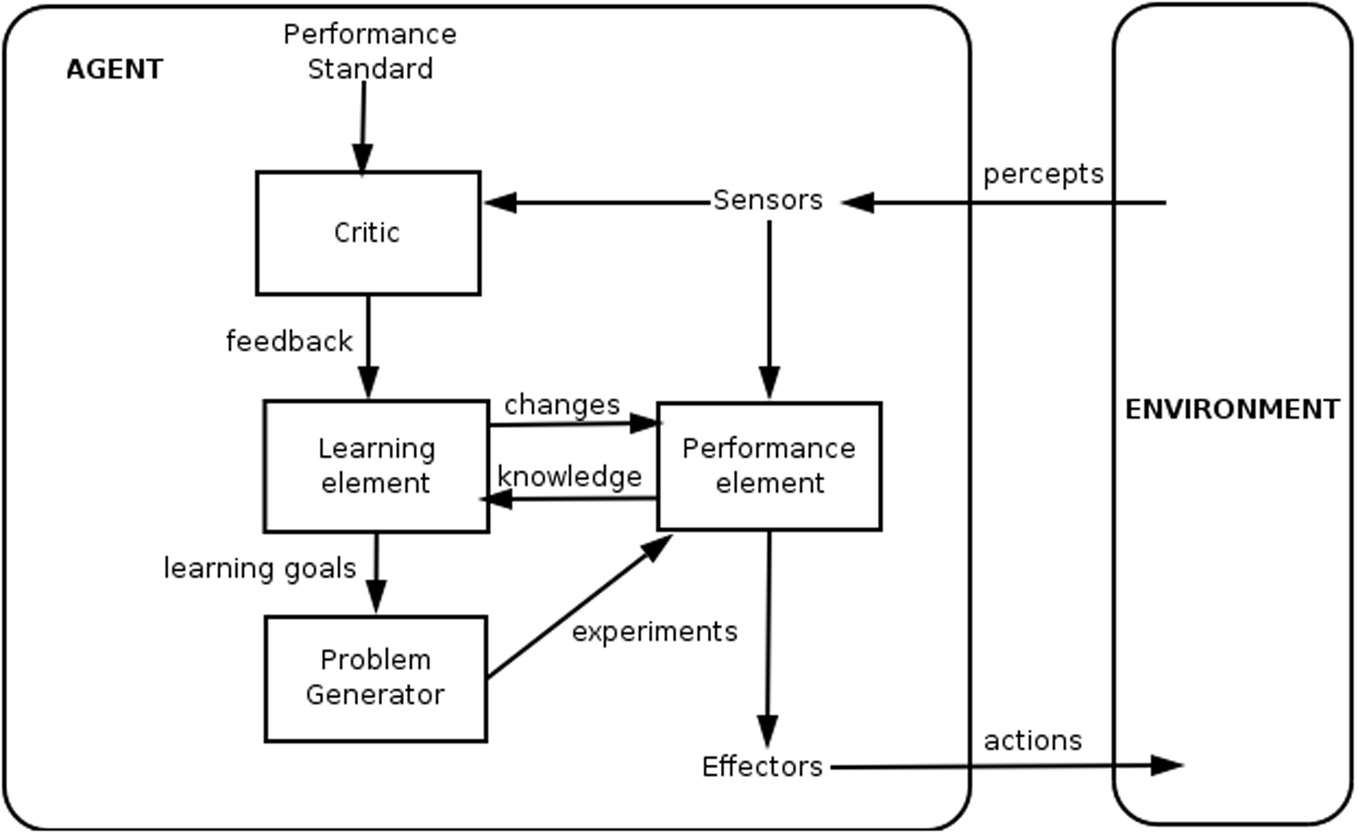 Generalized framework for a learning agent (reproduced with permission; WikiCommons).