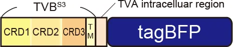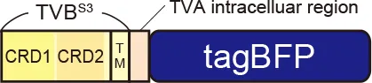 EnvA/TVA allows viral targeting to a particular cell population. To target two distinct populations with two different viruses, we next designed an additional infection system based on the EnvB/TVB system. oEnvB-pseudotyped rabies viral vectors have the potential to infect via TVB in vivo (Choi et al., 2010). We first attempted to develop TVB, a receptor for oEnvB-enveloped viruses. As the original TVB has several use issues, we optimized the TVB receptors for the rabies tracing experiments focusing on envelope affinity and fluorescence reporter detectivity to utilize the EnvB/TVB system for restricted viral transduction in a specific neuronal population.