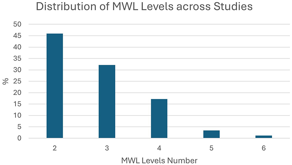 Figure 7. Percentage of studies (out of all included) that used a given number of MWL levels for classification (models' output dimension).
