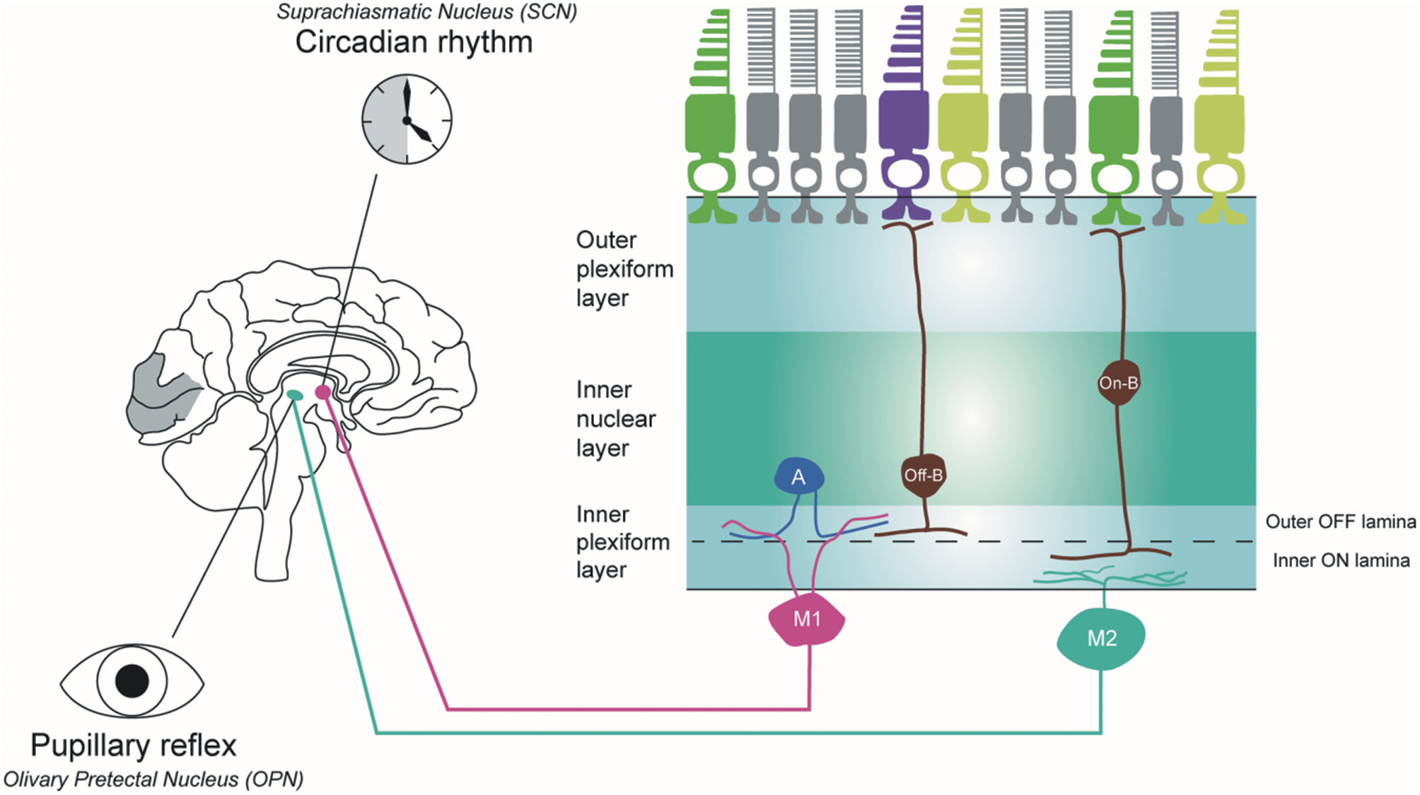 ipRGCs, intrinsically photosensitive retinal ganglion cells.