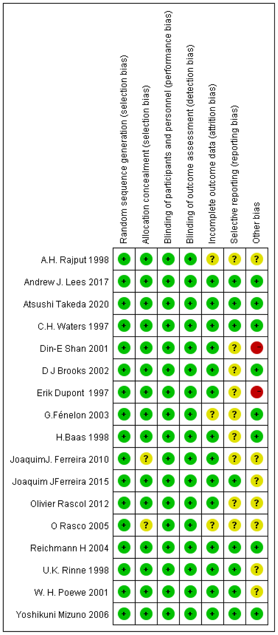 Stowe R Ives N Clarke CE Deane K van H Wheatley K et al . Evaluation of the efficacy and safety of adjuvant treatment to levodopa therapy in Parkinson s disease patients with motor complications. Cochrane Database Syst Rev. (2010) 2010:CD007166. 10.1002/14651858.CD007166.pub2